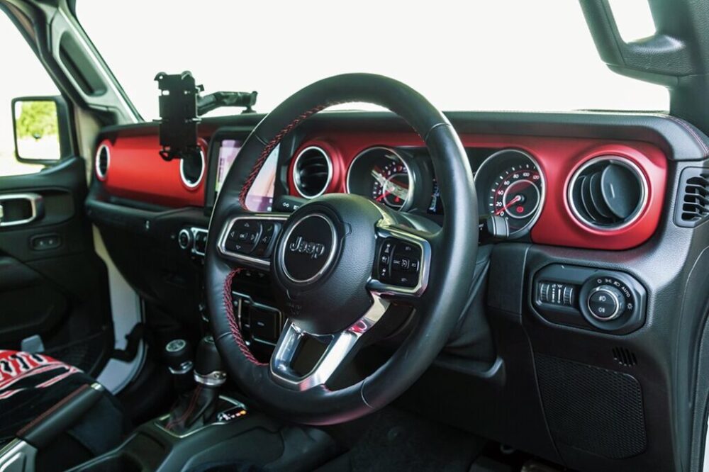 ダッシュパネルが赤いのはRUBICONの特徴。