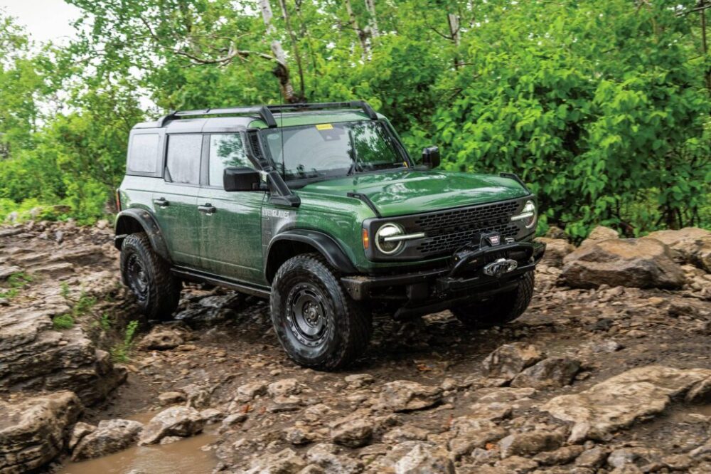 初代モデルを彷彿させるデザインをまとい’21年に復活を遂げたブロンコだが、’22年モデルでは直径35インチタイヤや、WARN社製ウィンチ、渡河性能90㎝越えを実現するシュノーケルなどを標準で装備したEvergladesというモデルを投入。ディーラーで購入したその姿のまま本格的なオフロード走行や泥濘地の走破が可能とあって、話題となった。このまま乗っても十分ヘビーデューティなのが魅力だ。