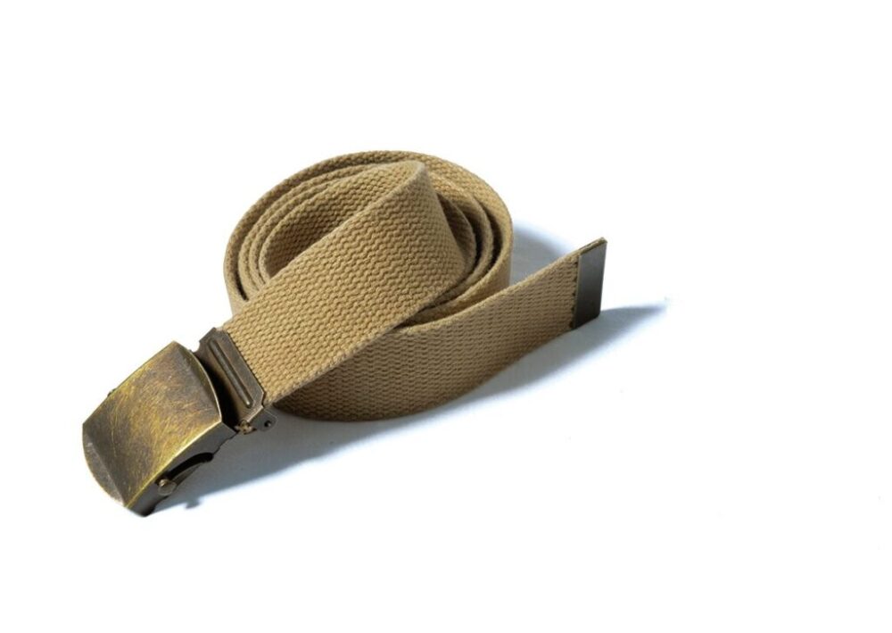 日本ではガチャベルとして親しまれる簡易的なスライドバックルを備えたウェブベルトも、欠かすことのできない名プロップのひとつ。