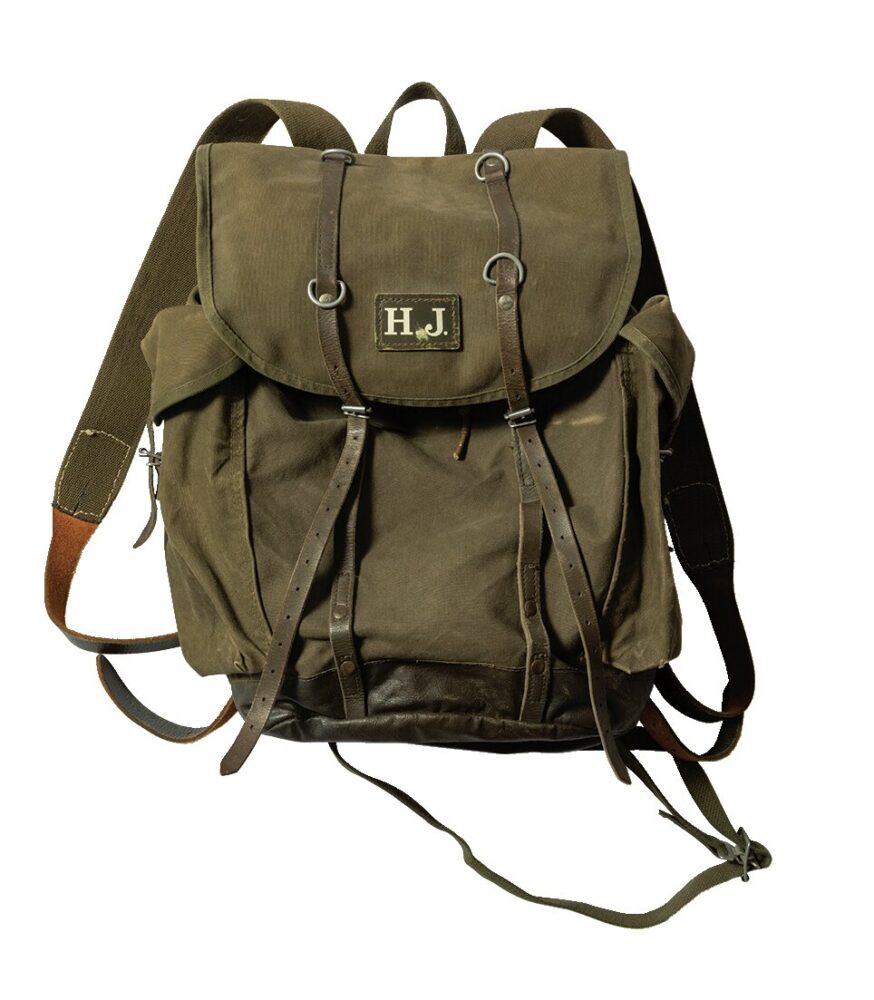 旧西ドイツ軍の山岳部隊で採用せれたバックパックをDIY。ネームパッチにはインディの本名ヘンリー・ジョーンズのイニシャルが入る。