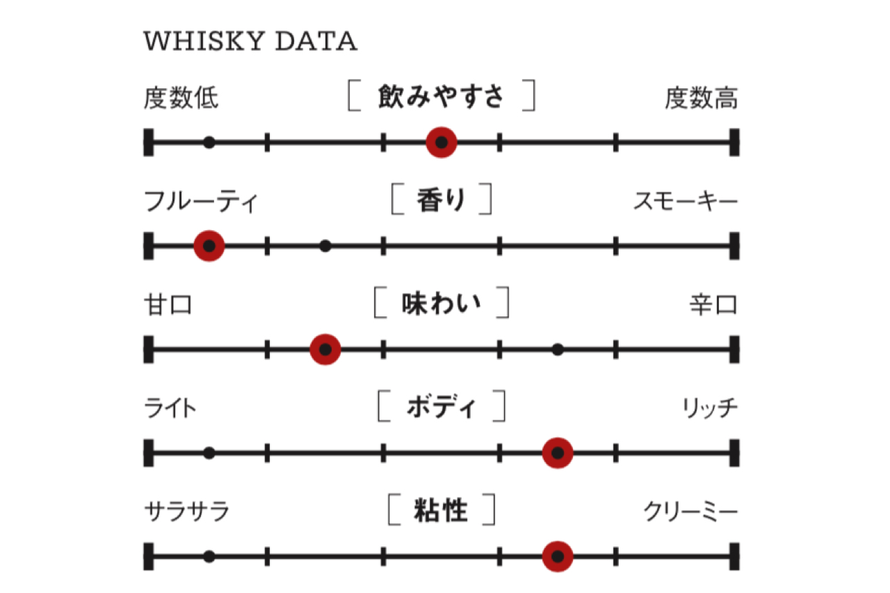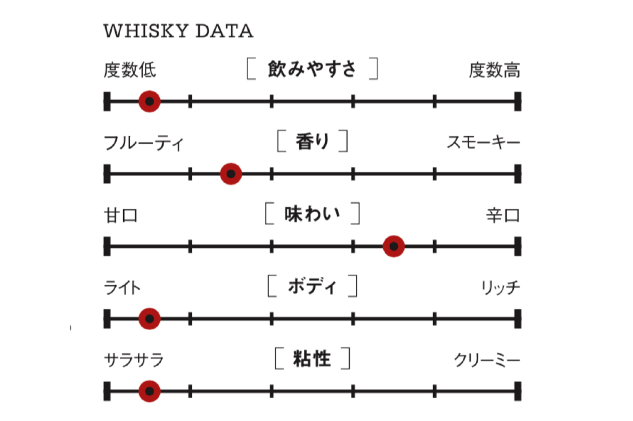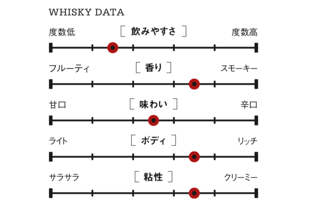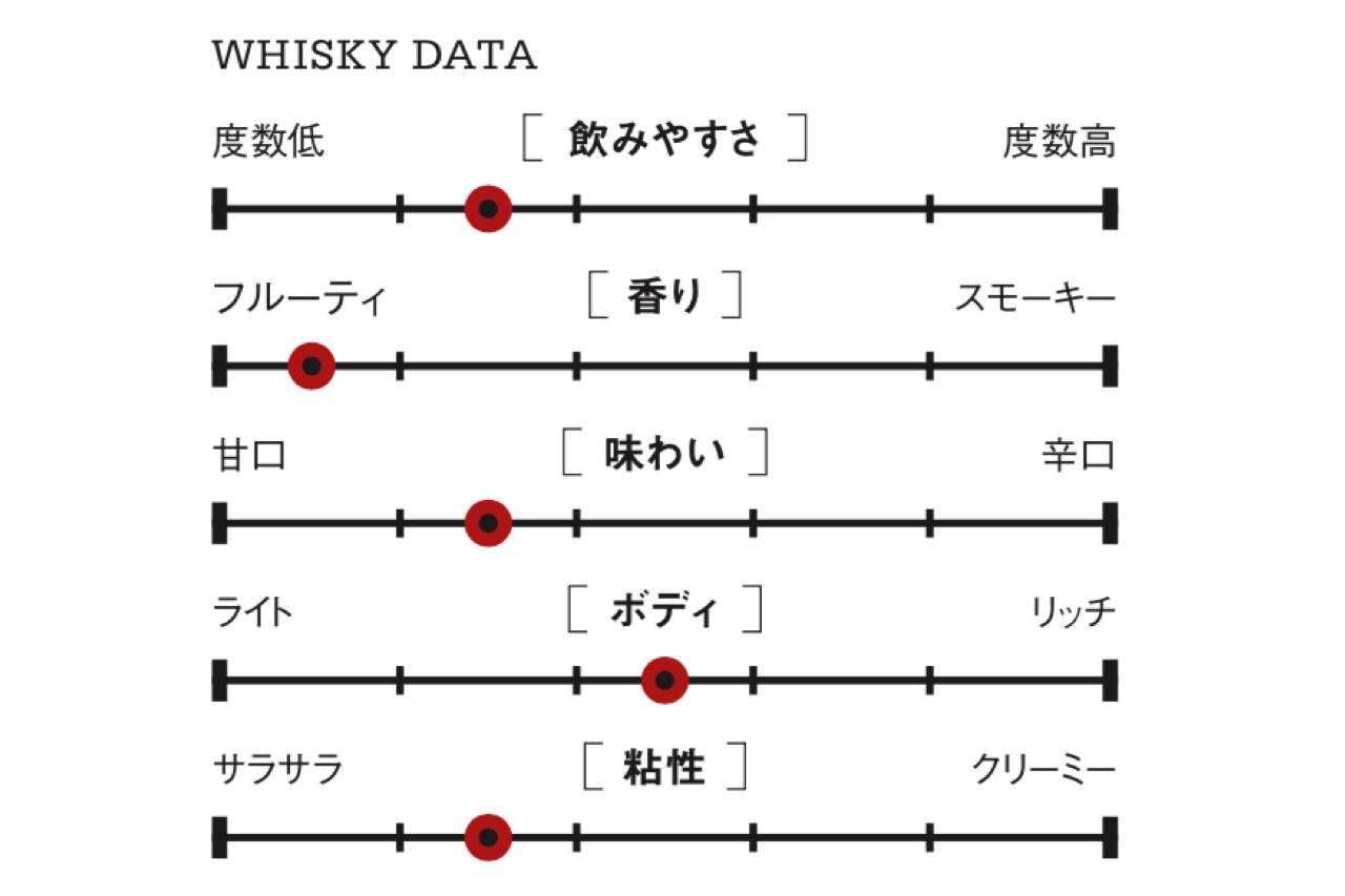 竹鶴政孝が第二の蒸溜所に選んだのが、気候風土がスコットランドのローランドに似た仙台・宮城峡。宮城峡モルトはスチームによるスチームによる間接蒸溜を採用。130度でじっくり蒸溜することで、おだやかでバランスの取れた香りと味わいを出している。余市より女性らしくおとなしい印象があるが、フルーティでまろやかな味わいが人気の理由でもある。アサヒビール TEL0120-011-121