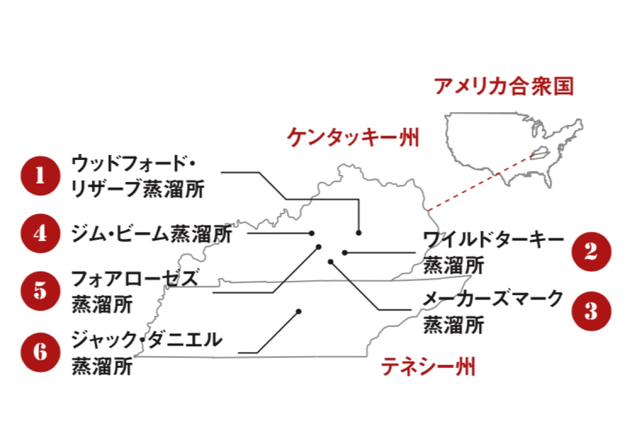 19世紀に入り、現在のケンタッキー州とテネシー州に多く移住し、ウイスキーが造られるようになったことから、ケンタッキーとテネシーに蒸溜所が集中している。