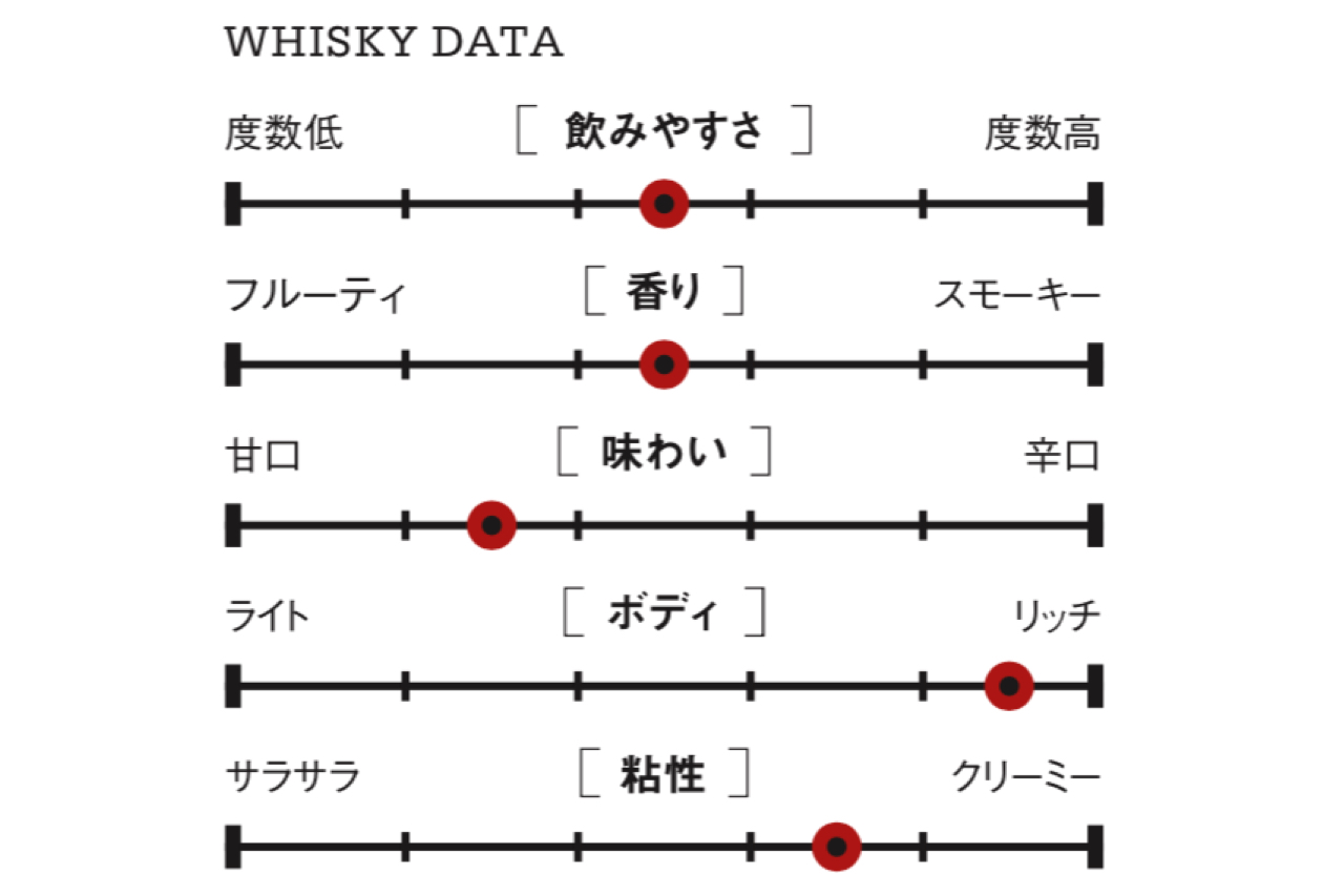 誕生から変わらない8年熟成。重厚でインパクトのあるフルボディテイストと、心地よい甘みとコクの余韻を残す。