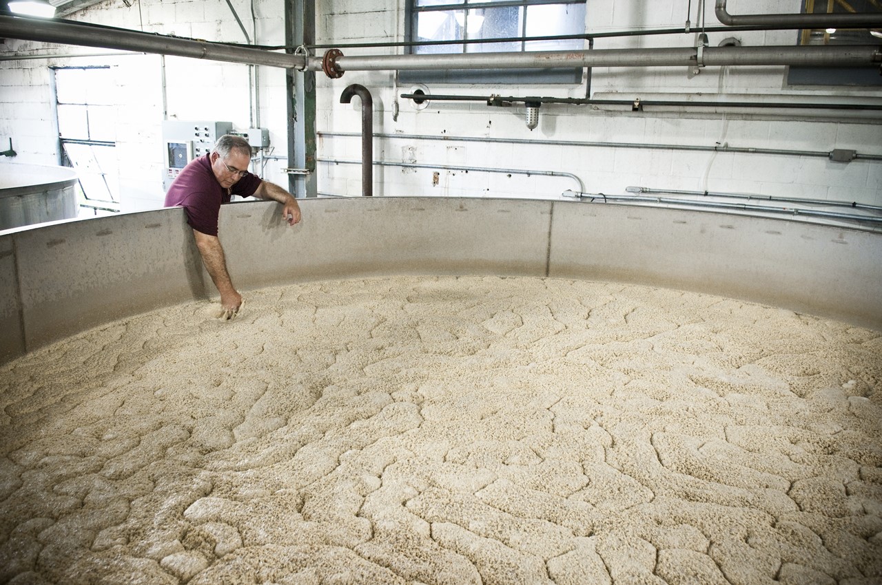 巨大なステンレス製の発酵槽。表面を細かな泡が覆い、良い香りが漂ってくる。