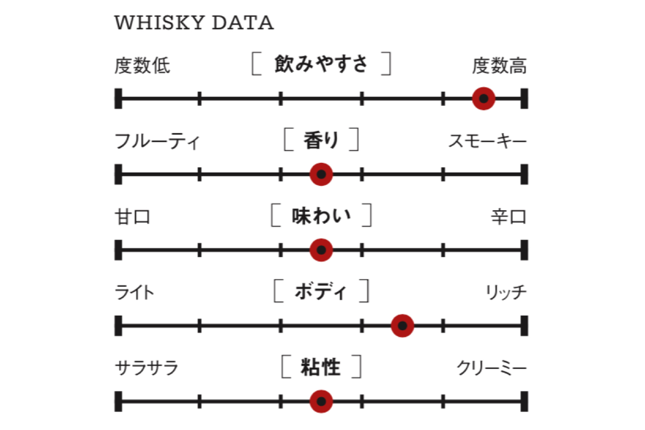 6年、8年、12年熟成の原酒をブレンドし、加水を行わずにボトリング。アルコールは58.4度。ロックかストレートで。