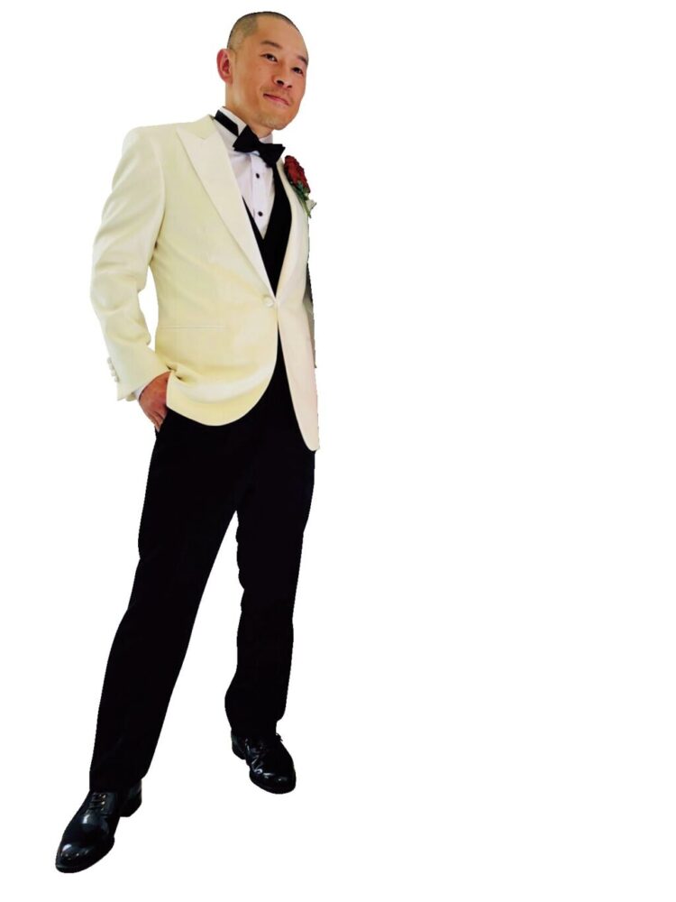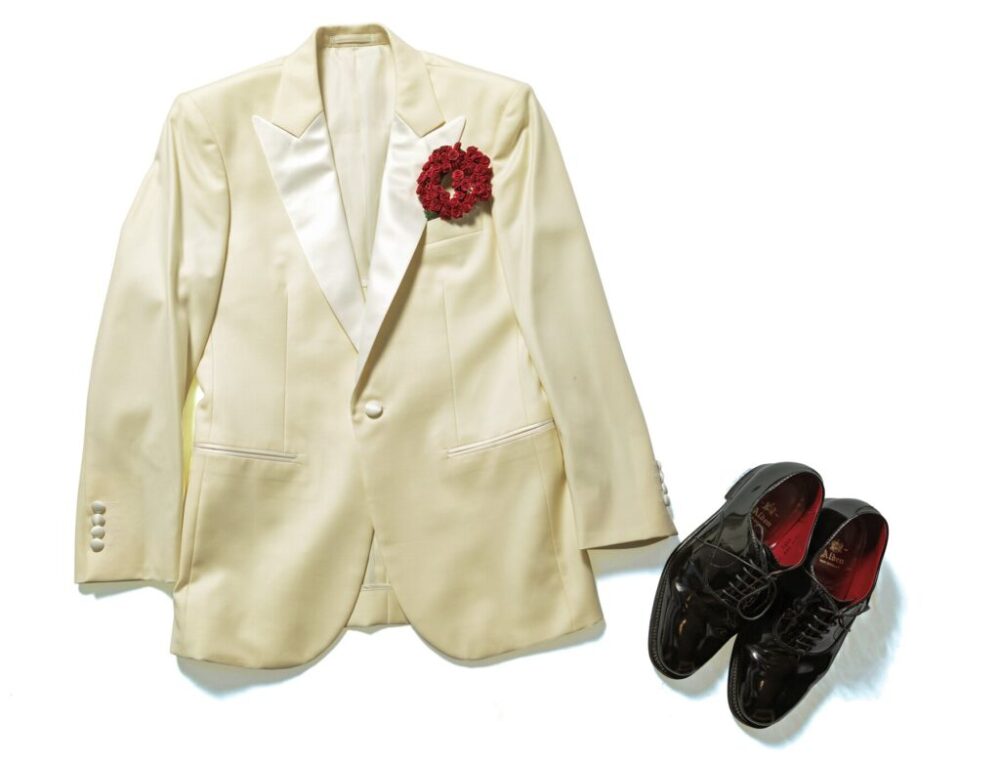 冒頭クラブでの取引の際、インディが着用していたタキシードを徹底研究し、来たるべく特別な夜の為に着用したという思い出深いオーダーメイド。オールデン社製パテントレザーモデルと合わせた。