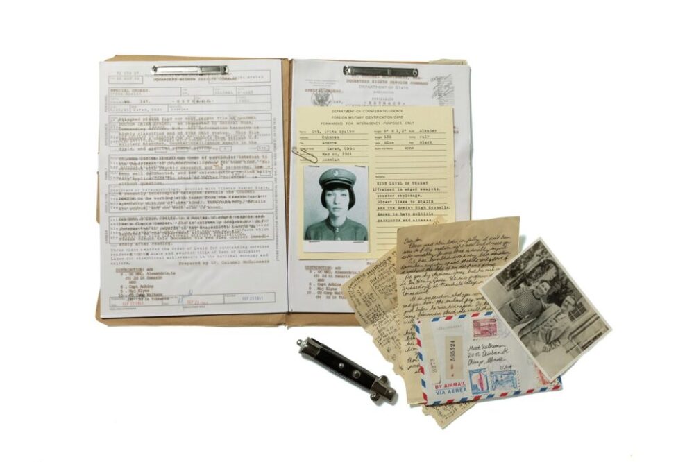 (左)KGBの女性エージェントとして描かれたイリーナ・スパルコの出自を記した極秘ファイル。こちらももちろん自作品という偏狂っぷり。(右)マットに託されたマリオンの手紙や写真なども紙のエイジングから筆跡まで忠実にDIY再現していた。