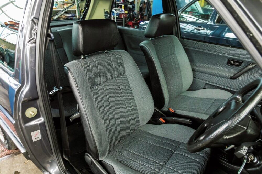 取材車両は、長年ヤナセで整備を受けていた3ドアのワンオーナーカー。ご高齢のユーザーから買い取りした車両であり、その状態はまさに「極上」だった。長年の乗り降りで傷みやすいグレーファブリックの内装も驚くほど状態が良く、前オーナーが大切に乗っていたことが伺えるのだ。