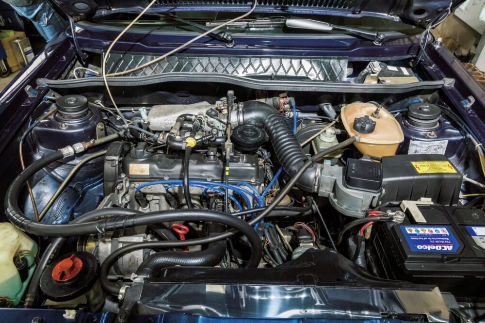 前オーナー曰く「これまでずっとどこもぶつけなかった」とのこと。それこそタッチペンの跡すら見当たらないほどだ。一度もレストアやリペイントをしていない個体のため、塗装の状態は非常によい。また機関も30年以上経過しているとは思えないグッドコンディションを維持している1台だ。