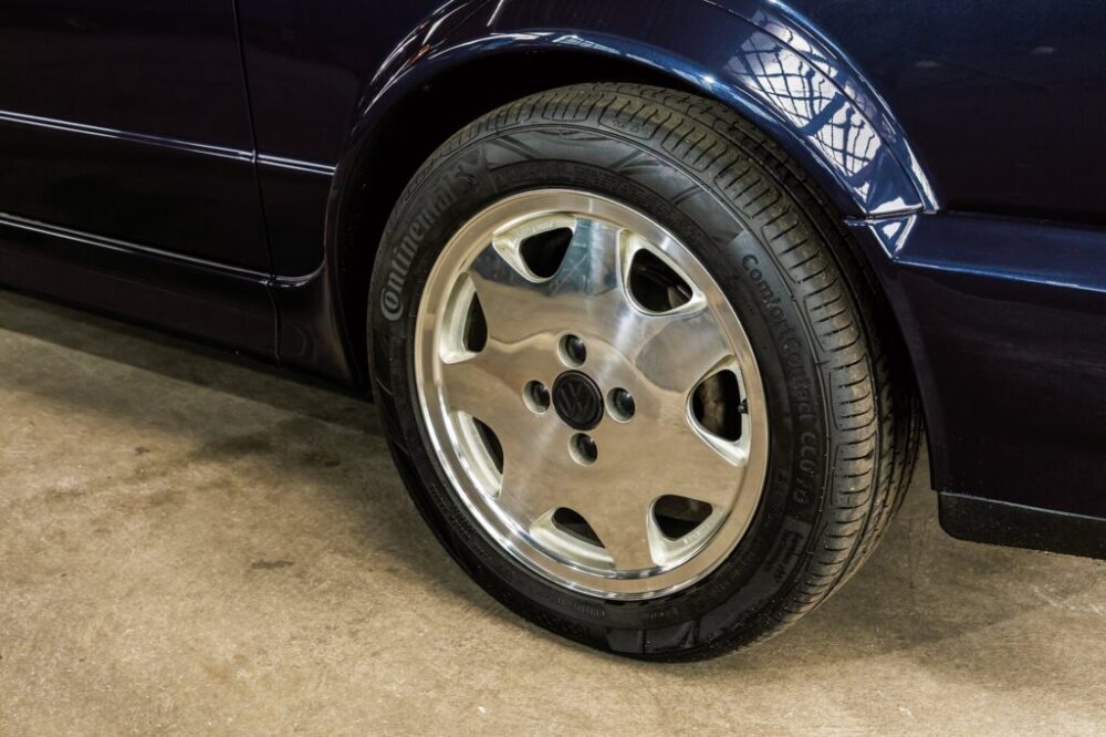 取材車両はゴルフ2最終期である`91年に販売されたクラシックラインという限定モデル。コットン帆布製のカラートップやレザーシート、15インチアルミホイールなどが標準で装備された豪華な限定車だった。