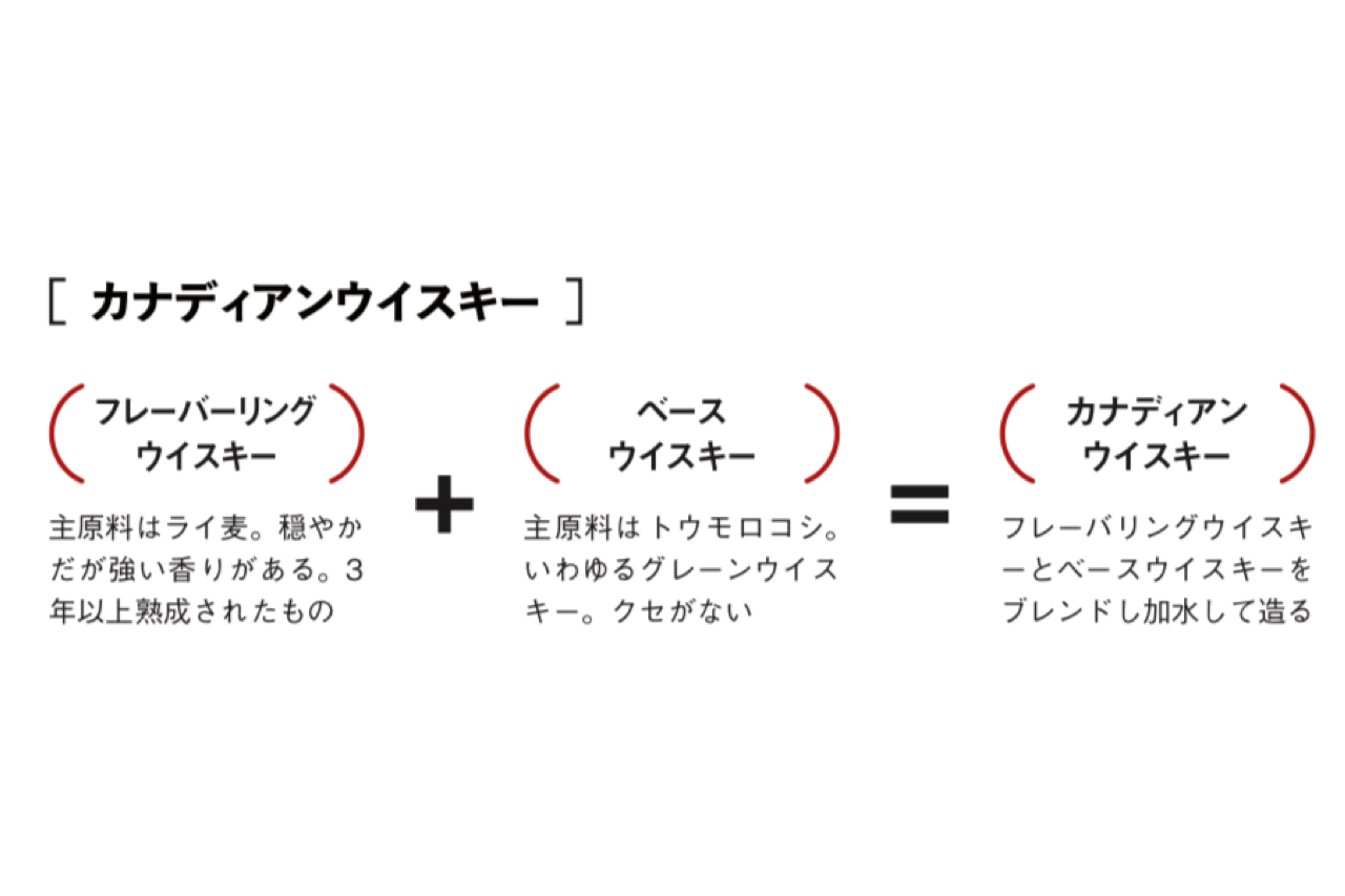 カナディアンウイスキーの特徴は、何といっても軽くてスッキリとした味わい。食事のときに飲んでも料理の味を邪魔せず、すっきりとした後味を味わえる。カクテルのベースに欠かせない存在でもある。スコッチやジャパニーズウイスキーとはまた違った飲み方を楽しめるウイスキーだ。