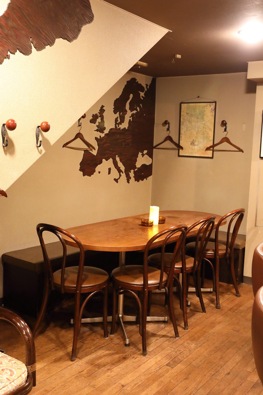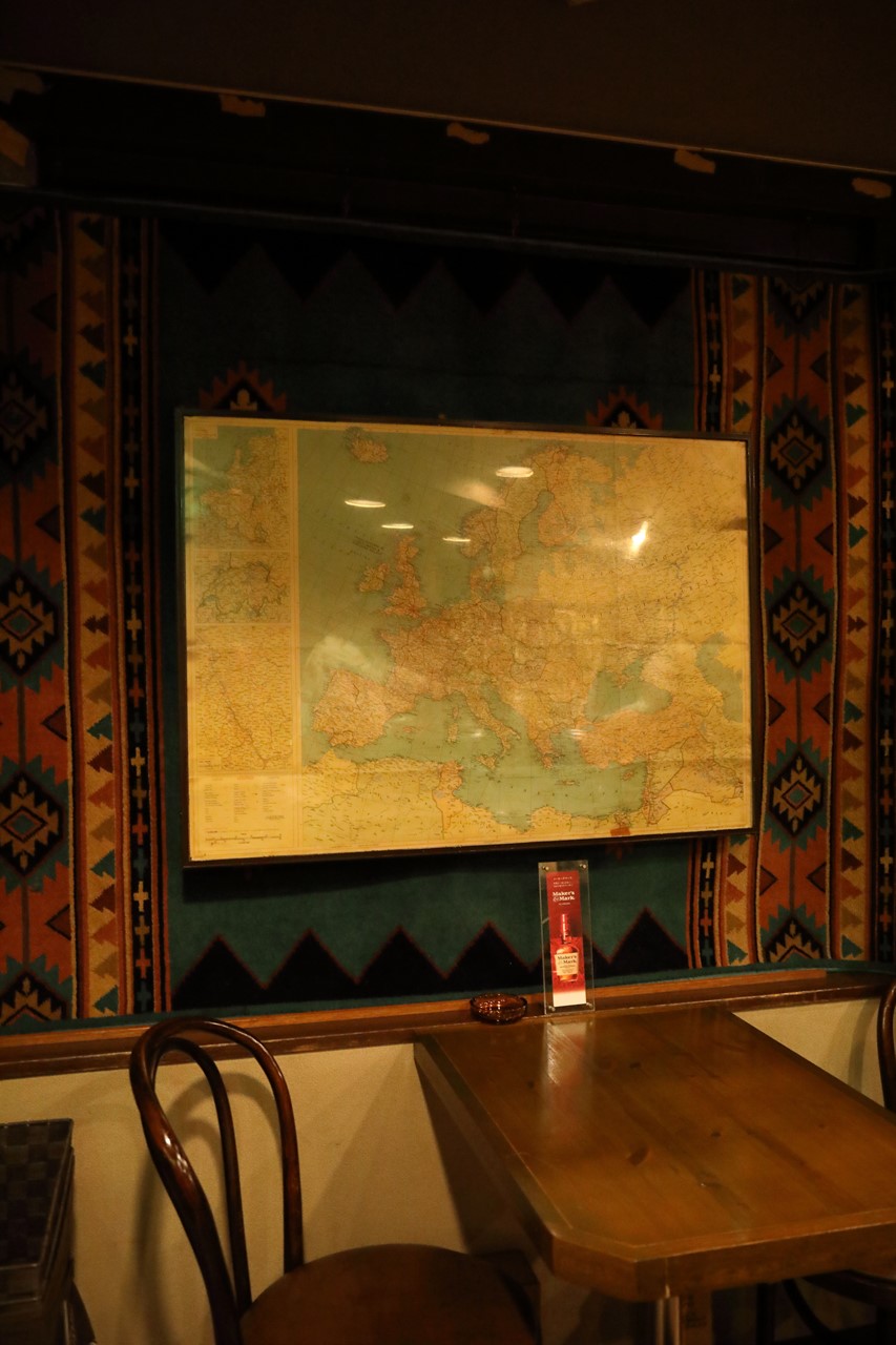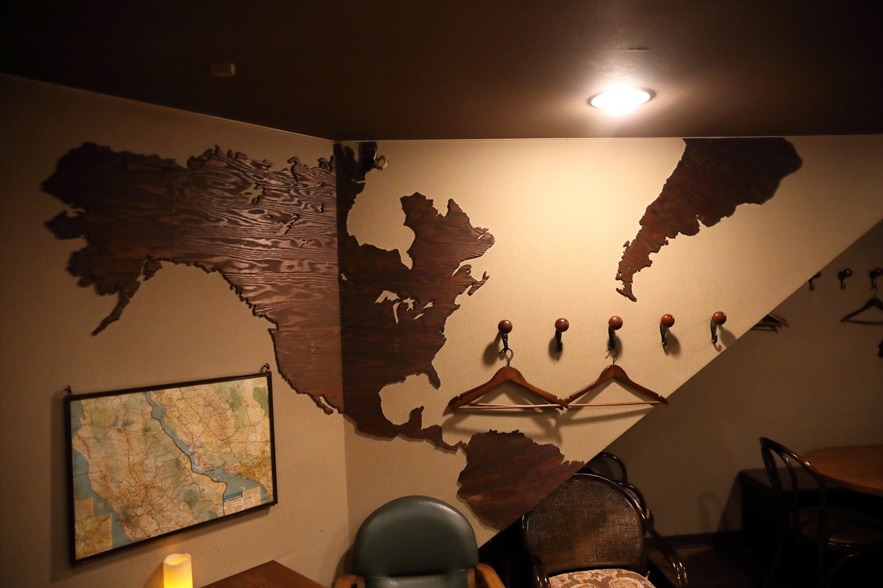 初代のオーナーが旅好きだったため壁には世界地図をディスプレイ。