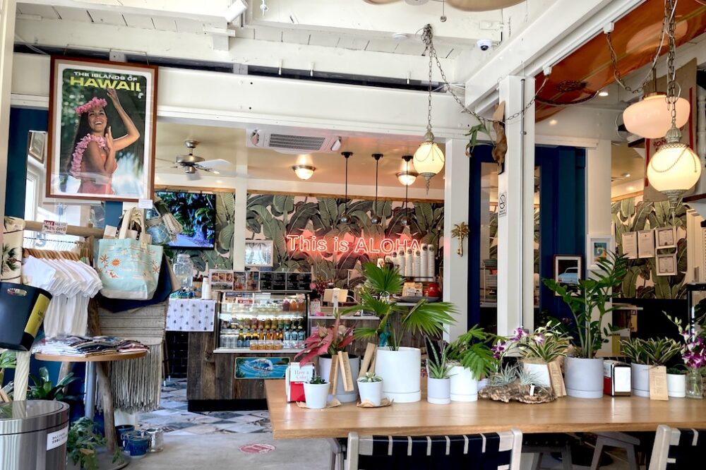 カフェに入れば、まるでハワイのロードサイドにあるローカルたちでにぎわうカフェのような雰囲気。