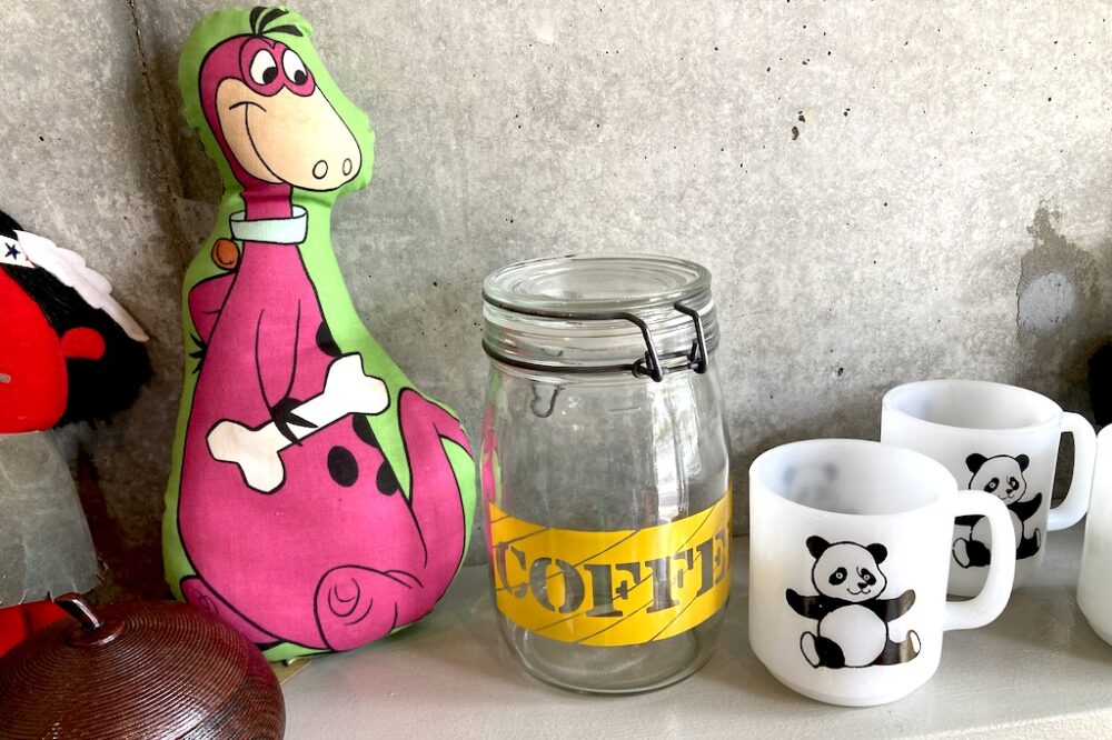 店内には古着はもとより、テーブルウエアに代表される雑貨やトイなどもセレクトして、老若男女が楽しめるラインナップが印象的。