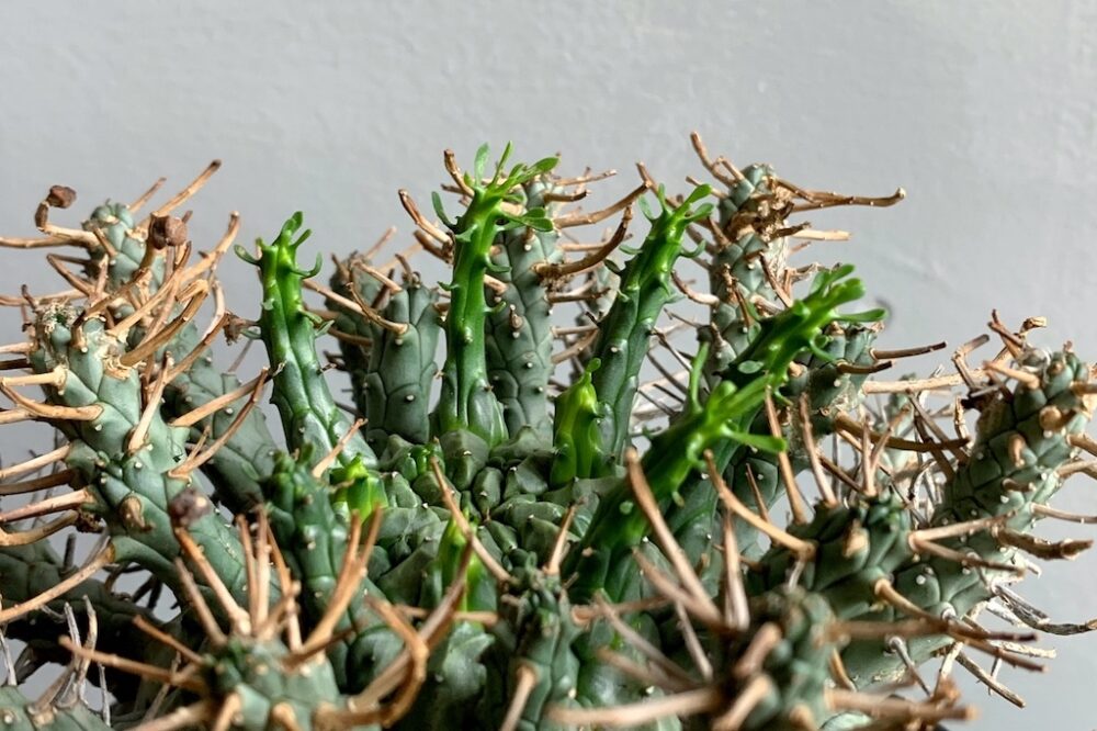タコモノ系ユーフォルビアに共通する特徴は、タコの足のように伸びる複数の枝。成長点付近からは、新しい枝が次々と出てきます。