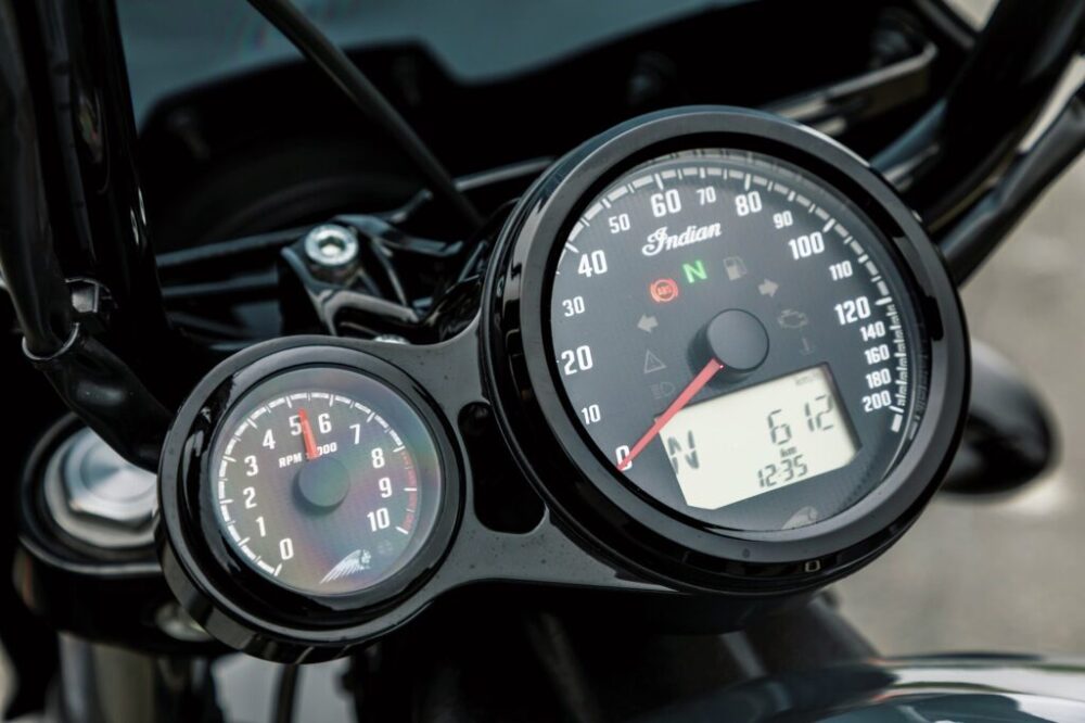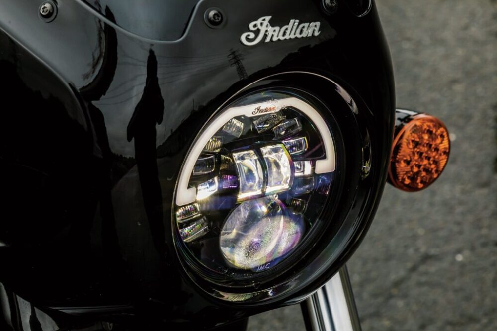 そういった部分を補うため、インディアンモーターサイクルでは豊富なオプションパーツが用意されている。ここで紹介した車両はそれらパーツのごく一部を取り付けたもので、ツーリング仕様にカスタマイズしたもの。タンデムシートや防水サイドバックを装着し、スポーティな走りをより楽しめるようにタコメーターとFOX製リアショックを装着した贅沢な一台だ。