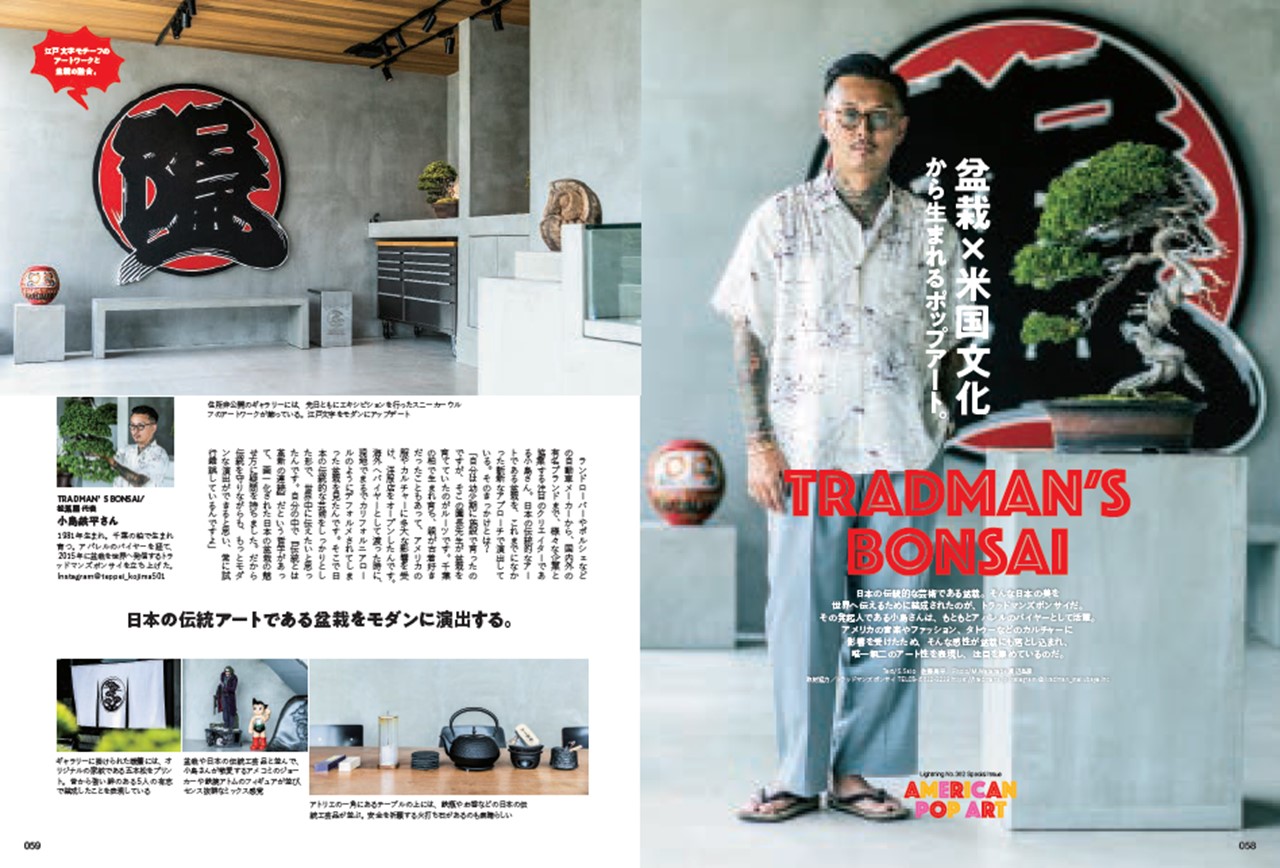 日本の伝統的な芸術である盆栽。そんな日本の美を世界へ伝えるために結成されたのが、トラッドマンズボンサイ。その発起人である小島さんは、もともとアパレルのバイヤーとして活躍。アメリカの音楽やファッション、タトゥーなどのカルチャーに影響を受けたため、そんな感性が盆栽にも落とし込まれ、唯一無二のアート性を表現し、注目を集めているんですよ。