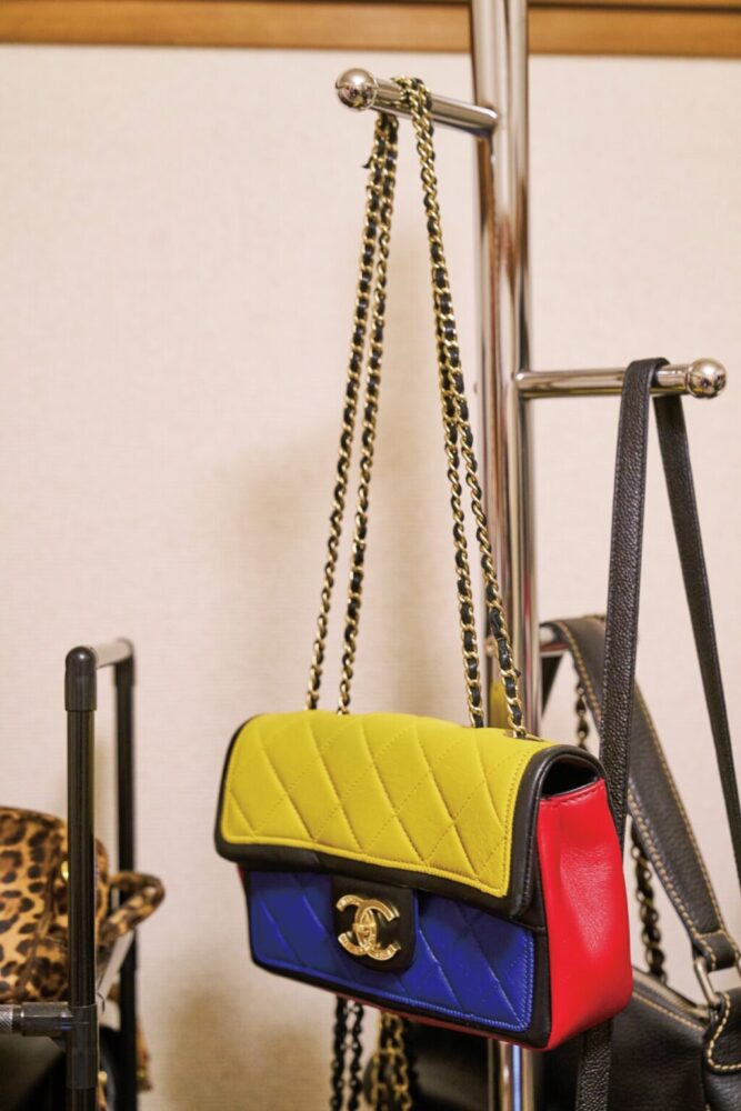 モンドリアンパターンが印象的なCHANELのバッグ。ヴィンテージも収集するほどCHANELがお気に入り。