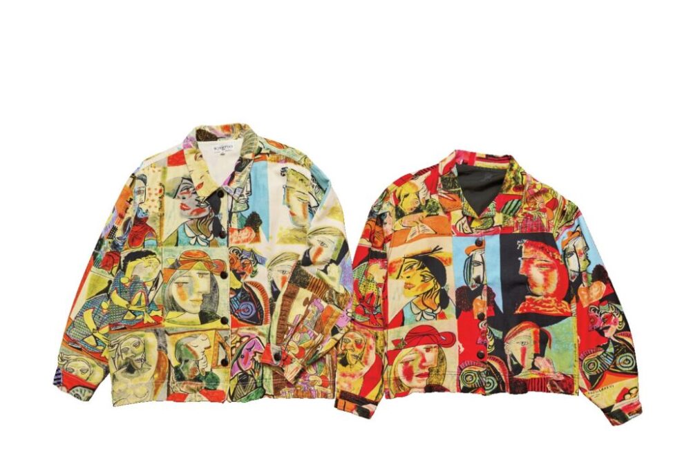 古着のピカソジャケットは、1980年代頃のもの。アメリカ買付時に見つけ、夫婦でお揃いで着られるからと所有しているもの。実際に2人で着たことは……