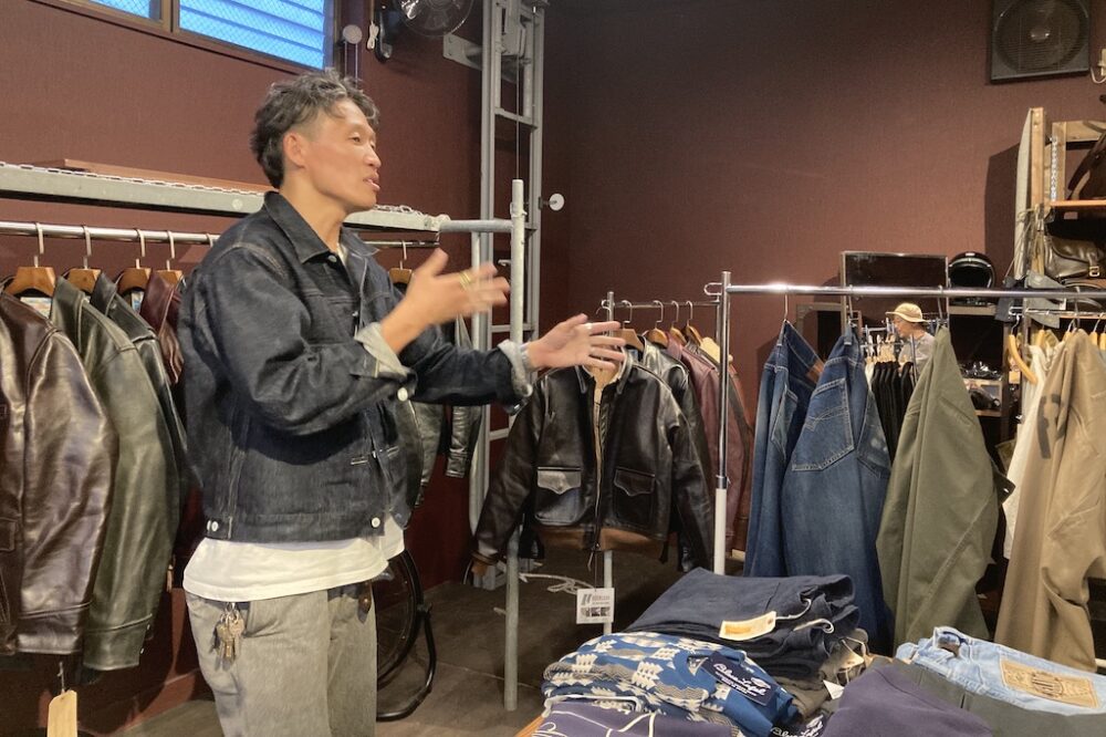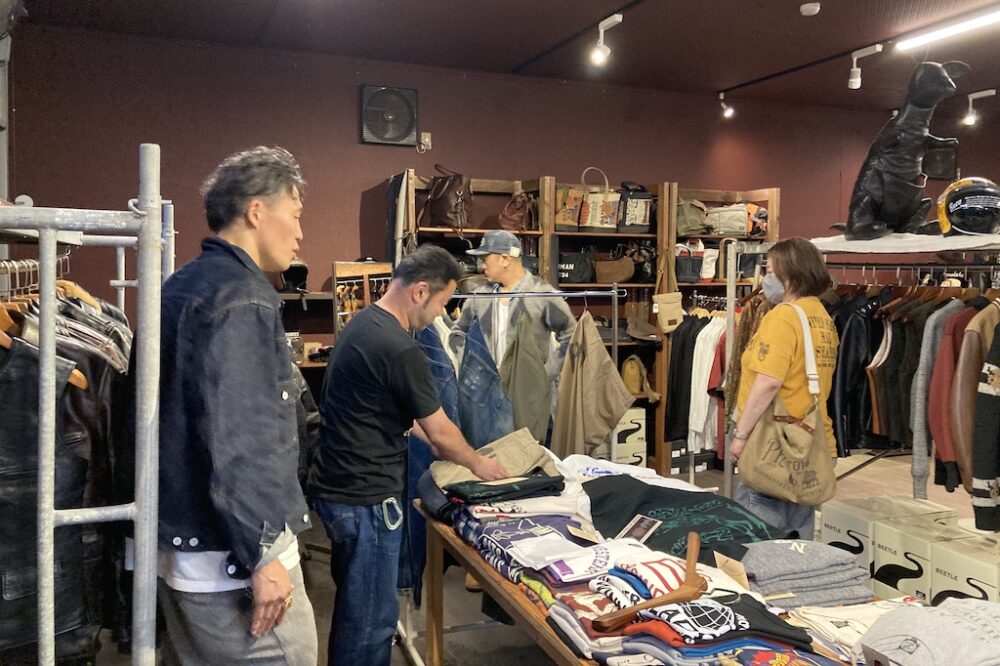 会場となったバーンストーマーは国内屈指のストックを誇るセレクトショップ。とくにレザージャケットやブーツ、それにデニムは圧巻のラインナップを誇るので、静岡県内だけでなく、東京や神奈川、山梨県など、県外からも多くのファンがやってくる。