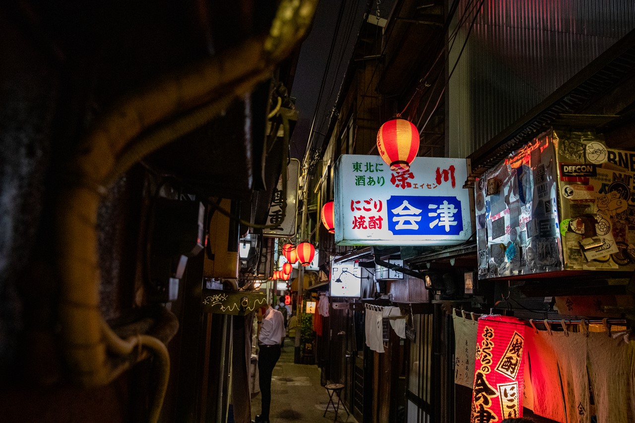約40店舗が密集する渋谷のんべい横丁。現役ママが作る田舎の手料理や焼き鳥、マグロ専門店、ワインバーやショットバーなど、新旧織り交ぜ、店の形態も様々。今回、田村さんが立ち寄ったのは飲み友達が曜日限定で店主をしているという「会津」という店。