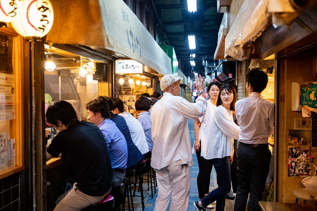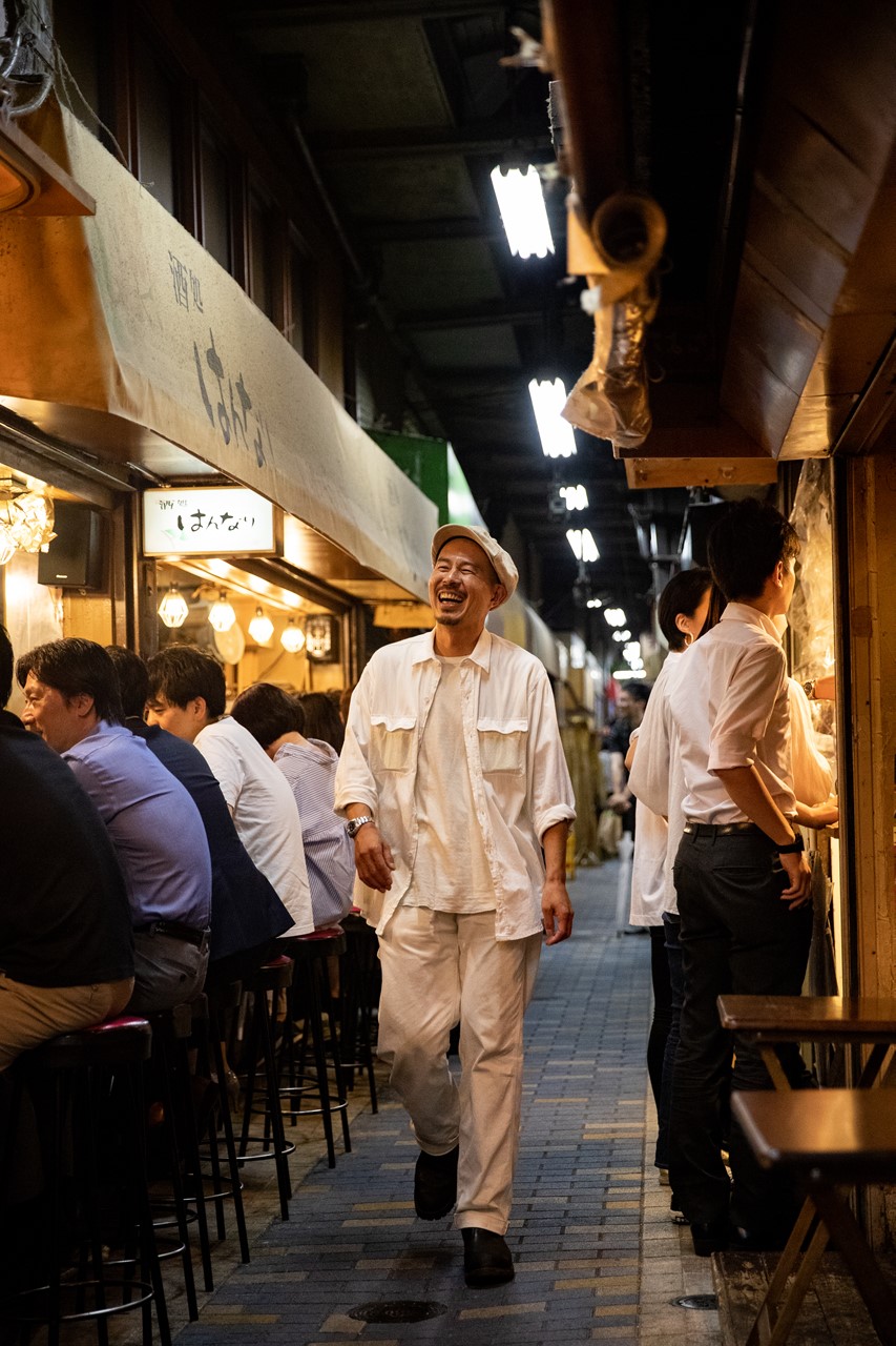 伊勢さんのショップから横丁まで徒歩5分ほど。老舗漬物店の清水屋の繋がりから、ちょくちょくハーモニカ横丁で飲むようになった伊勢さん。人との繋がりを大切にする彼の粋な性格は、飲みっぷりの良さを見ているとこっちまで心地よくなってしまう。