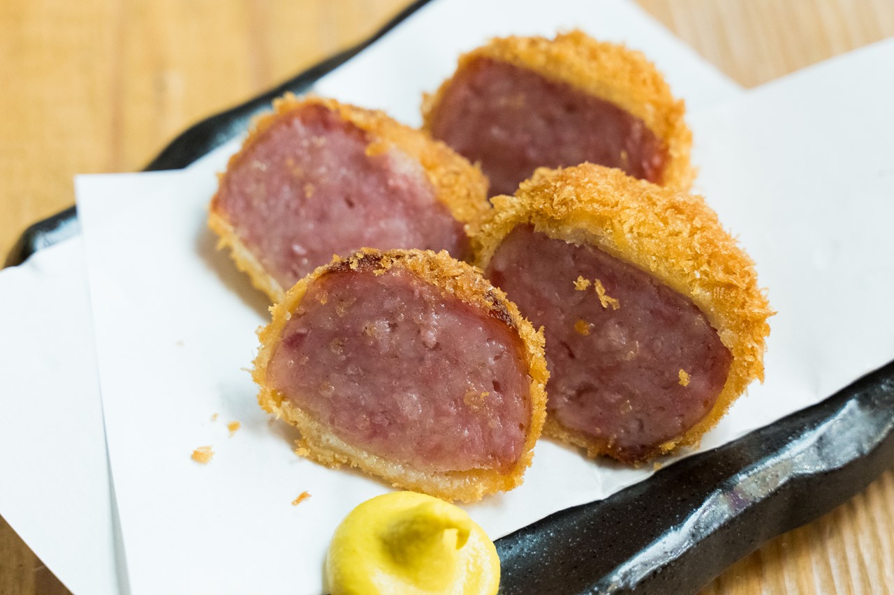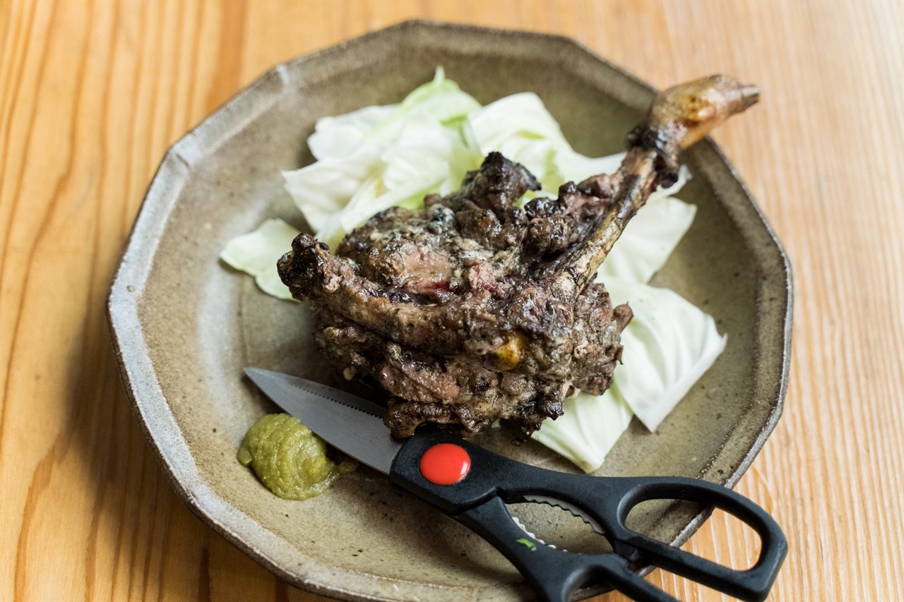 産地から直送されてくる朝びきの霧島地鶏を使ったメニューが売りの都久志屋。中でも、大きな骨つき肉の塊をハサミでカットして食べるダイナミックな名物料理「親鳥骨付もも肉の炭火一本焼宮崎の味」(999円)は絶品。他にも、ボリュームたっぷりの「長崎雲仙ハムカツ」など、九州の特産品を使った料理やお酒が充実している。