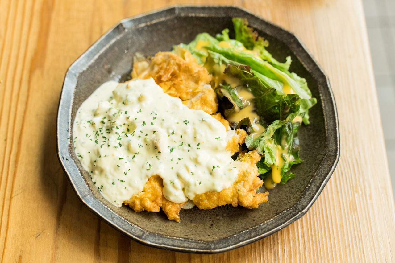 こちらは霧島鶏を使ったビッグサイズの「チキン南蛮」(899円)。たっぷりかかったタルタルソースとふんわりサクサクの衣、そしてジューシーな鶏肉のコンビネーションが絶妙だ。