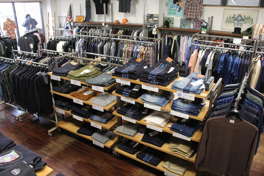 取り扱いブランドは鬼デニム、ステュディオダルチザン、サムライジーンズ、JELADO、DENIME、ジャパンブルージーンズ、児島ジーンズ、Pherrow’s、HOUSTON、ALPHAなど豊富にセレクト。