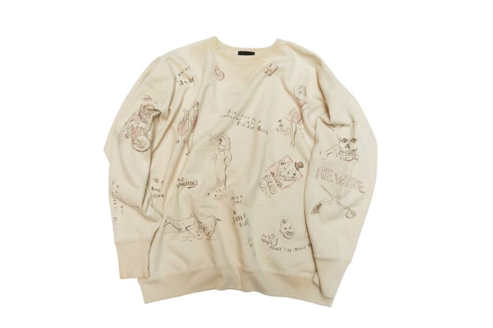 前後にガゼットの付いたスウェットに、すべてL.さんのハンドペイントでアートワークを落とし込んだ。ヴィンテージがイメージソースとなった。