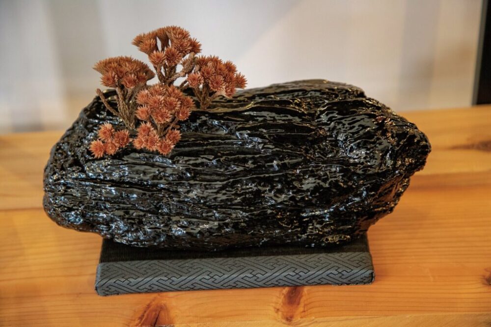 と話すのは、漆塗りなどの伝統技術を使った新しい作品を提案する「EN_」の小川直人さん。小川さん自身は作り手ではなく、ファッション業界出身。異業種だからこそできる伝統に縛られない柔軟な発想と幅広い人脈を活かし、まずは自身が若い頃から好きだったストリートカルチャーの象徴であるスケートボードのデッキに漆に漆塗りを施し、そこに化粧をあしらったものや、流木に漆を塗った花器などの作品を生み出した。
