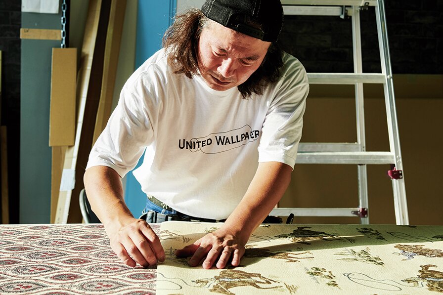 ラングラーのヴィンテージコレクターとしても知られる金丸さんは、世界的なメーカーからスポーツの祭典まで、様々な内装を手掛けるスペシャリスト。そのヴィンテージへの深い愛と、内装業で積んだ経験や技術を結集させ、かつて1920〜’50年代にカンザス州で実在した壁紙メーカーであるユナイテッドウォールペーパーの実名復刻を果たした。