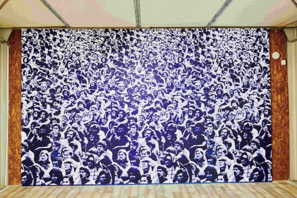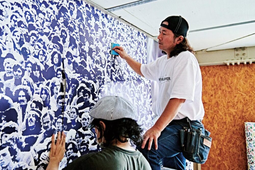 ウッドストックの観客を撮影したフォト柄は、1970年代にジャケットやパンツなどで展開されていた。ヴィンテージでも人気の高いフォト柄を、今の技術で完全に蘇らせている。この人気のパターンを壁紙で使おうというアイデアは、ヴィンテージラバーの金丸さんだからこそ。ロックやヴィンテージ好きにはたまらないデザインである。