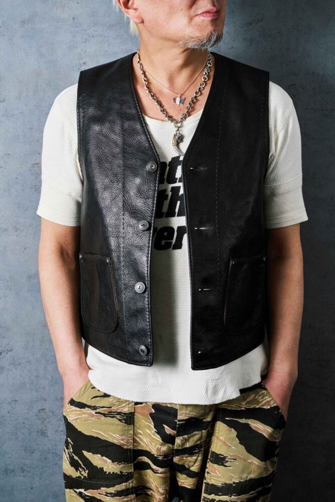 さて、革ベストの季節がやって来た。先日、俺のYouTubeチャンネル「モヒカン小川のレザーチャンネル」で、上野にある「ゴートラボ」にお邪魔した。ここは、シルバーブランド「ドッグステート」のオーナーTOSHI氏と、レザーブランド「ゴールデンレシオ」オーナーの飯島一樹氏が共同で始めたショップ。二人とも俺の飲み友達でもある。