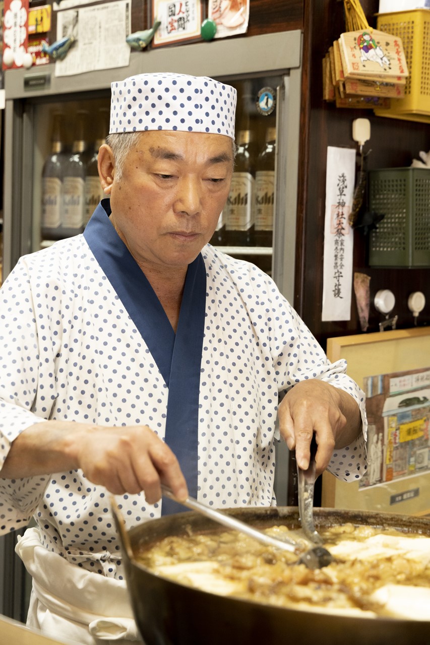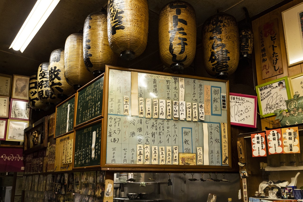 店内には芸人のサインや提灯がずらり。中でもビートたけしの名は燦然と輝く。並み居る名店に埋もれぬよう、鯨料理を出すようになったが、たけしも『浅草キッド』で「煮込みしかない……」と歌うほど、そちらも有名。この雰囲気にすかさず酔い、壁中のサインが自分への励ましに見えてきた。芸人であろうがなかろうが、夢を持つ人は一度詣でてみるといい。