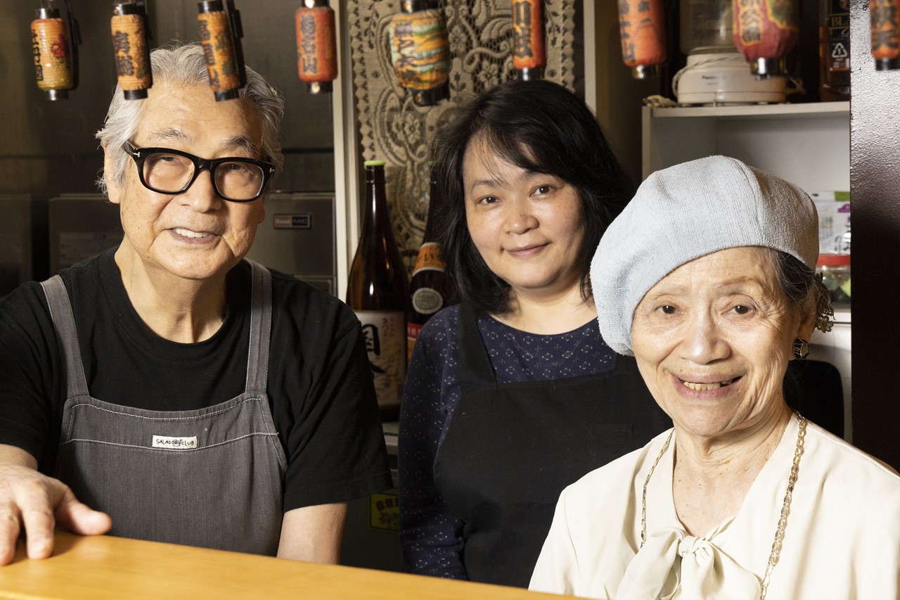 ご主人の酒井健次さんは滋賀生まれ。40歳で脱サラし、店を始めた。狭い厨房でいそいそ働く姿はとても80歳を超えたとは思えない。半世紀以上も連れ添う女将の貞子さんとはスキーがきっかけで知り合い、渋谷のダンスホールにもよく繰り出したという。