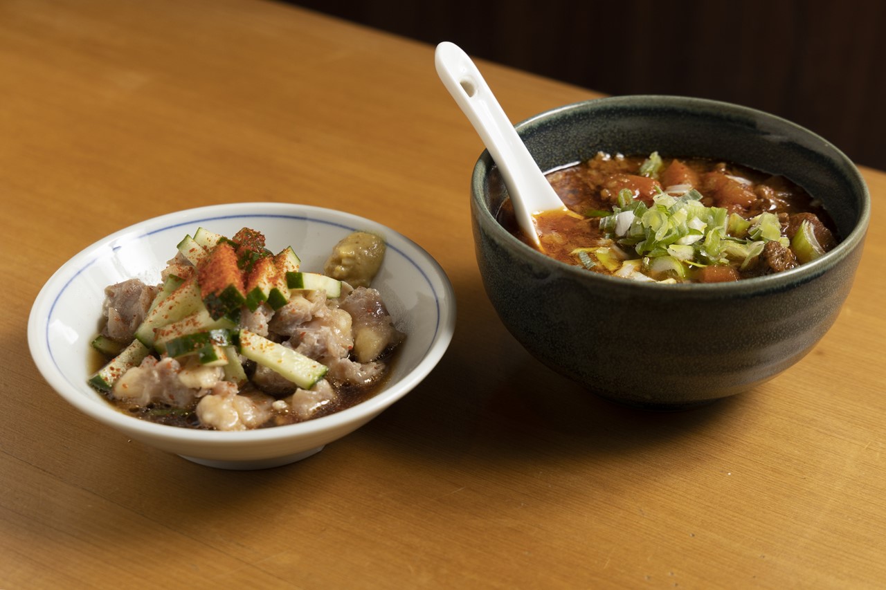 牛スジのカレー風味煮込みも名物。焼酎の当てにも向くが、思わずライスが欲しくなる濃厚な旨味にクラクラする。