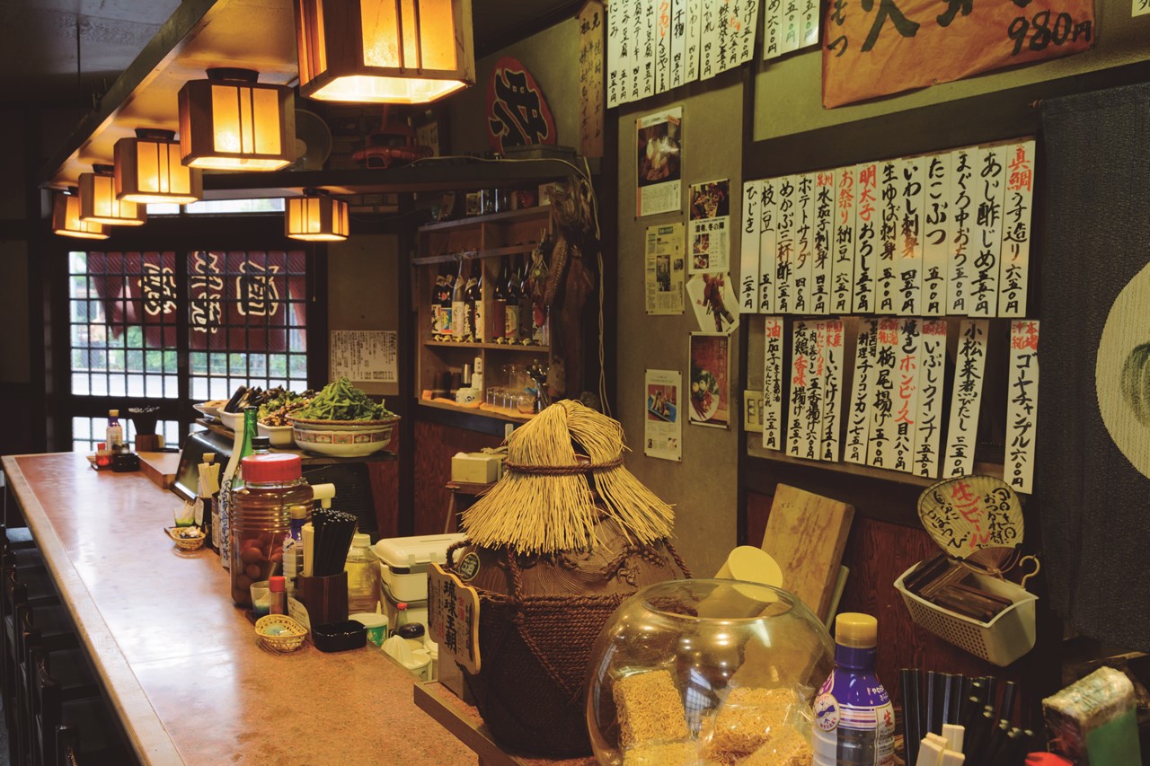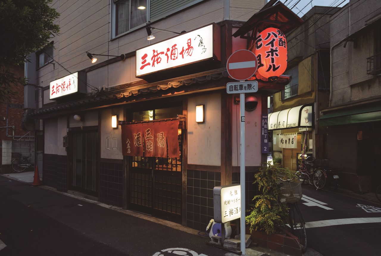 八広店が開業したのは昭和41年味のあるのれんをくぐるとI字カウンターがお目見え、その前には今日のお品書きがズラリと揃う。その日仕入れた食材を使った季節を感じる料理に舌鼓を打ちながら、店主が教えてくれる酒場の歴史に耳を傾けると、元祖チューハイを飲む手も止まらない。