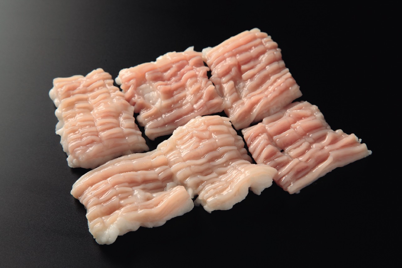 牛の第3胃。幾重にも重なる薄いひだが千枚もあるように見えるのがこの名前の由来。グロテスクな見た目に反して、味はさっぱり。鉄分が豊富に含まれている。胃の先端は肉厚なので焼いても美味しい。
