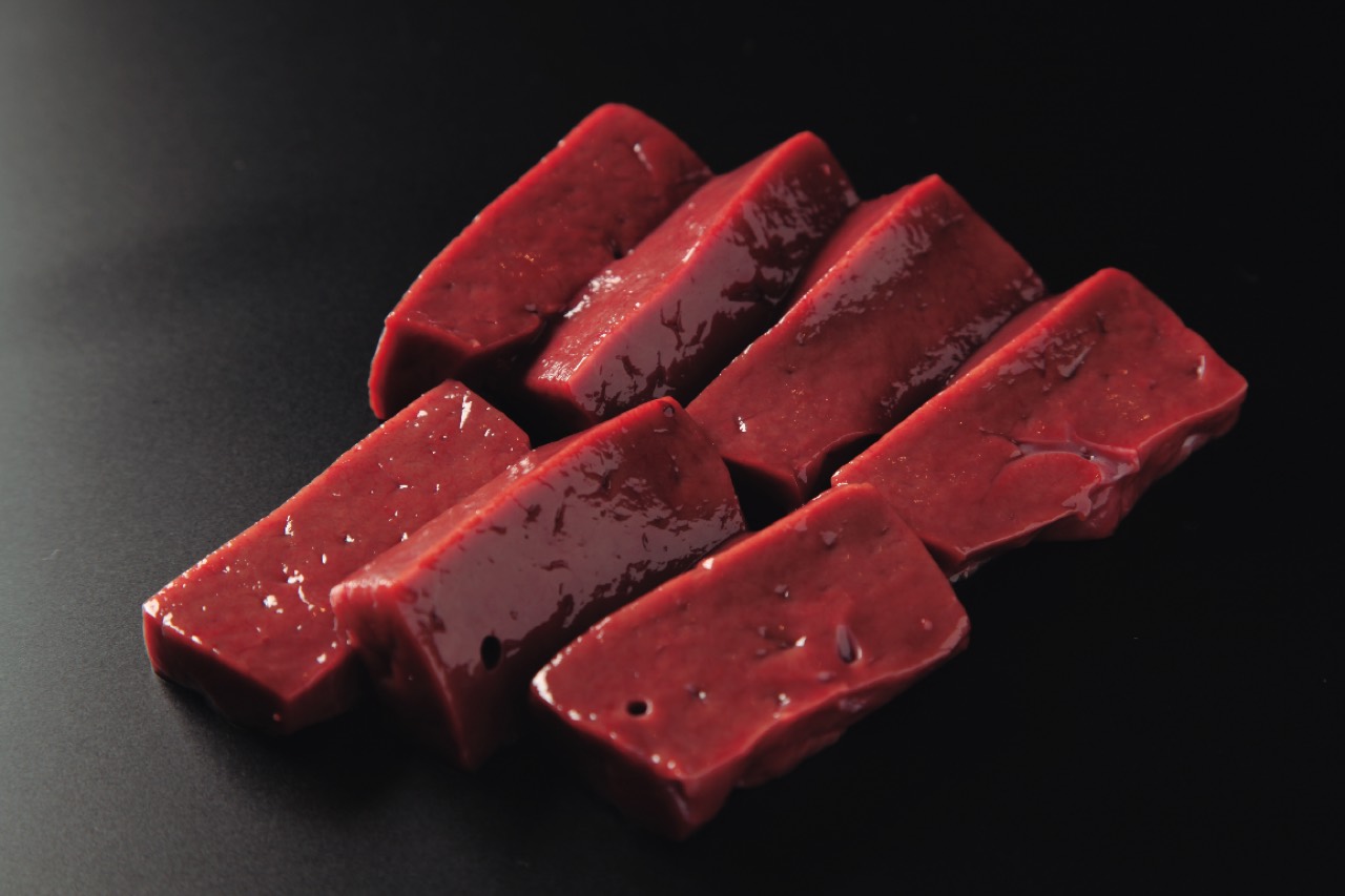 肝臓のこと。栄養素の分解・合成を行う臓器だけに栄養のかたまり。特にビタミンA、B2、B6、B12が豊富。造血器官でもあるので鉄分も豊富に含まれている。貧血気味の人、夏バテ気味の人にオススメ。