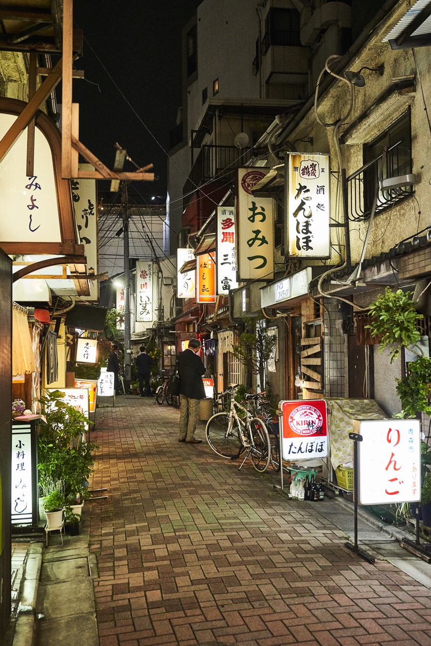 江戸時代から富岡八幡宮の別当だった永代寺の門前町として栄えてきた門前仲町。駅周辺にも大衆的な居酒屋が多いが、駅から数分歩いたところに現れる「辰巳新道」はわずか50mほどの路地に30軒以上の 飲食店がまさにひしめくように立ち並ぶ。その風情はまさに「ザ・横丁」だ。一見入りにくそうな雰囲気もあるが観光客も多いこともあってかどのお店も気さく。安心してはしご酒を楽しみたい。