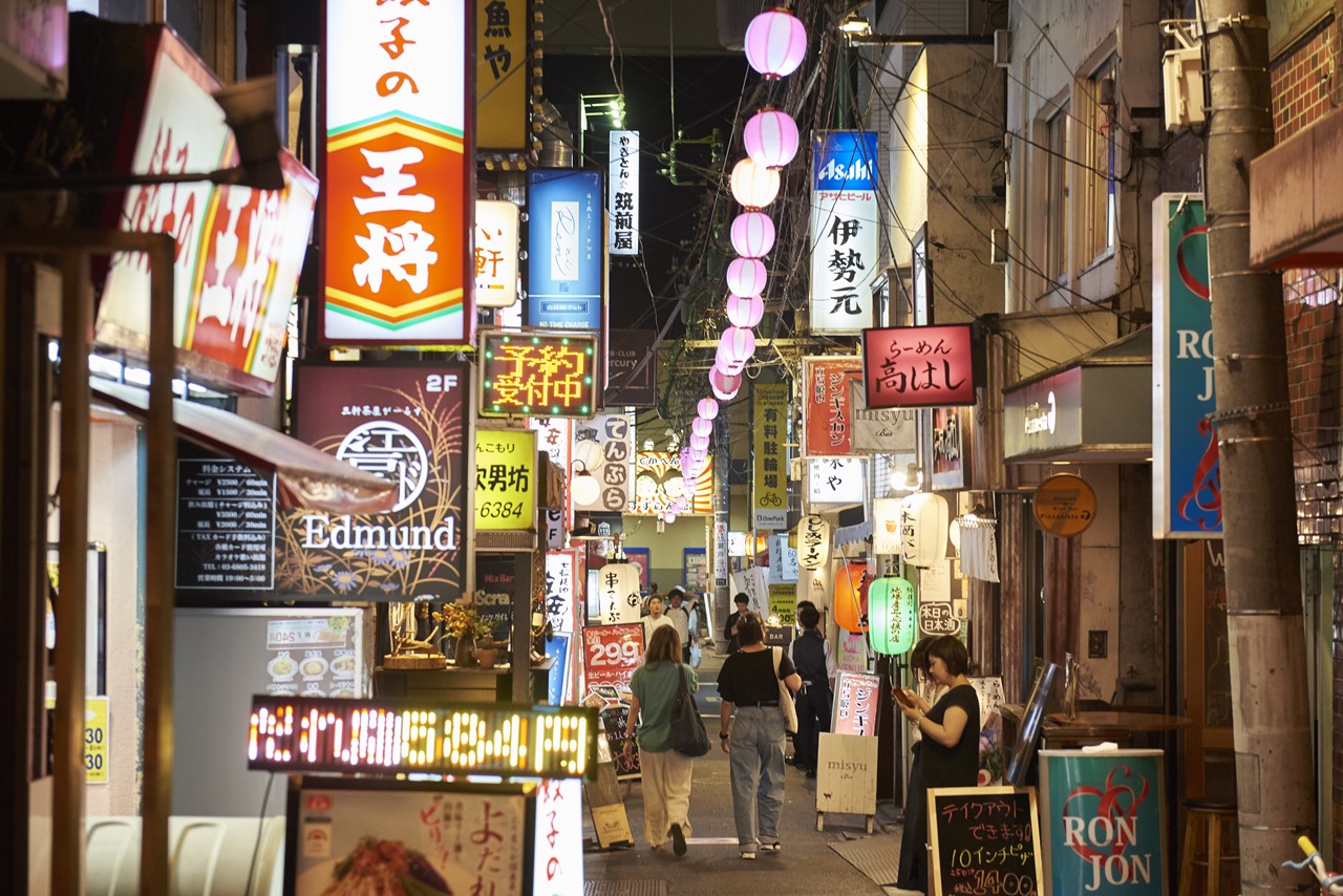 渋谷駅から徒歩1分。ガードをくぐって明治通りに出る手前に時が止まったようにひっそりと佇む赤提灯街。それが「のんべい横丁」だ。わずか数10mのエリア居酒屋を中心に約40店。どこも一坪二坪という小ささで、なかには50年近くやってる老舗もあるなど、最初は入りづらい印象を持つかもしれないが、外国人観光客や一見客も多いので思い切って昭和時代へのタイムスリップを楽しんでいただきたい。