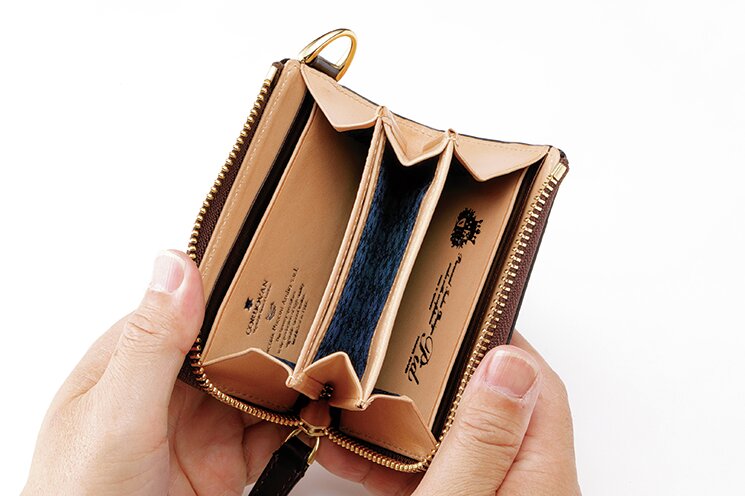 それがコレ。P.I.Dというブランドのコードバンウォレット。革の質や仕上がりの美しさは当然として、カード入れなどのスペースやDカン付で使い勝手はかなりよさそう。実際、見た目がどんなに優れていても、使いずらかったら本末転倒だしね。