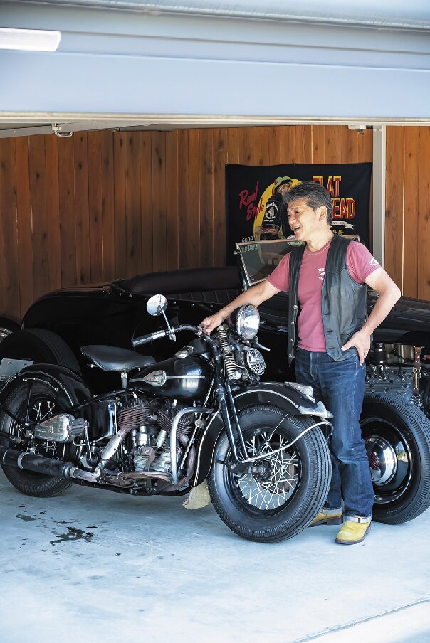 最近ザ・フラットヘッドの広報車として迎え入れられた’46年式ハーレーダビッドソンU。軍用車にも採用された実績を持ち、壊れても直せるという頑丈な作りで知られる通称“フラットヘッド”エンジンを搭載。そのためブランド名はこのエンジンに由来し名付けられている。今回の車両は、外装の雰囲気にも、ブランドが目指しているイメージを重ね合わせているという。