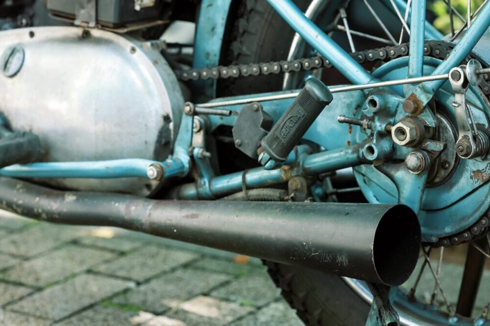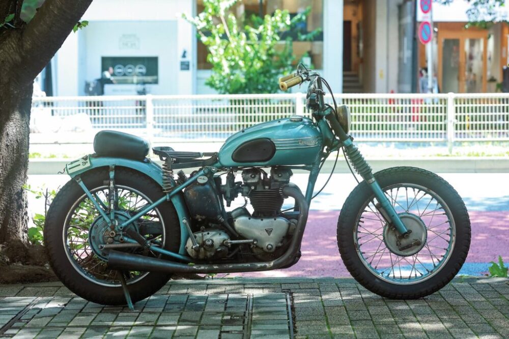 1949年に北米市場を狙い、5Tスピードツインの大排気量モデルとしてリリースされた名作。1955年にはスイングアームに進化するため、それ以前のリジッドモデルを狙った。ナセルヘッドやフェンダーなどを取り外し、マフラーも変更。