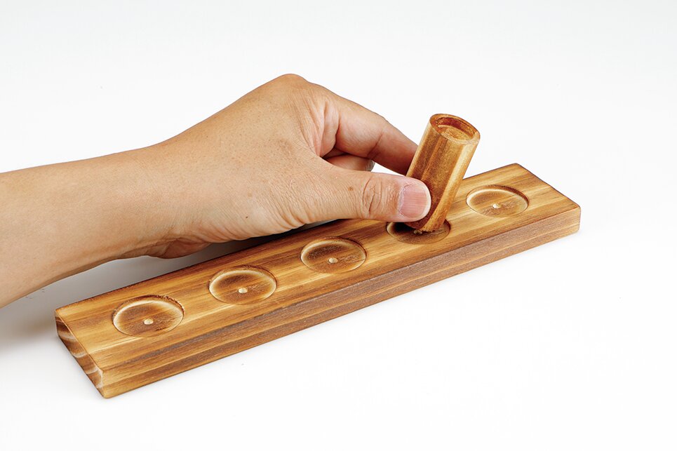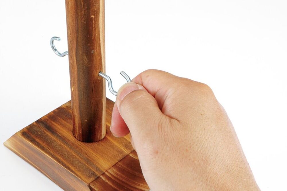 内容はいたって簡単で、左右の紐のリングを、中央の木にあるフックにかけるだけ。フックをかけたほうが駒を進めていく。