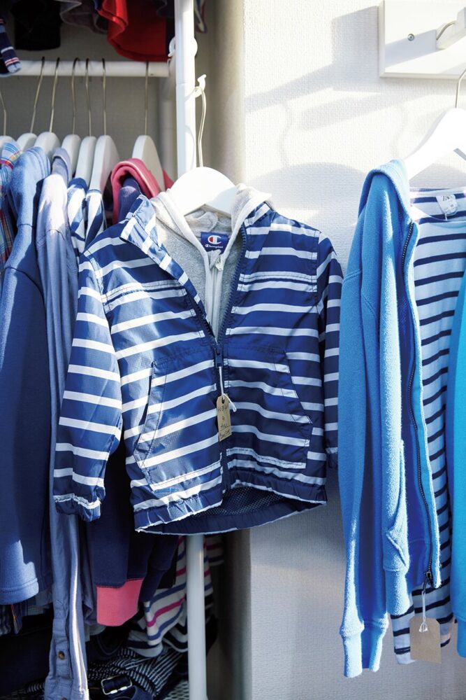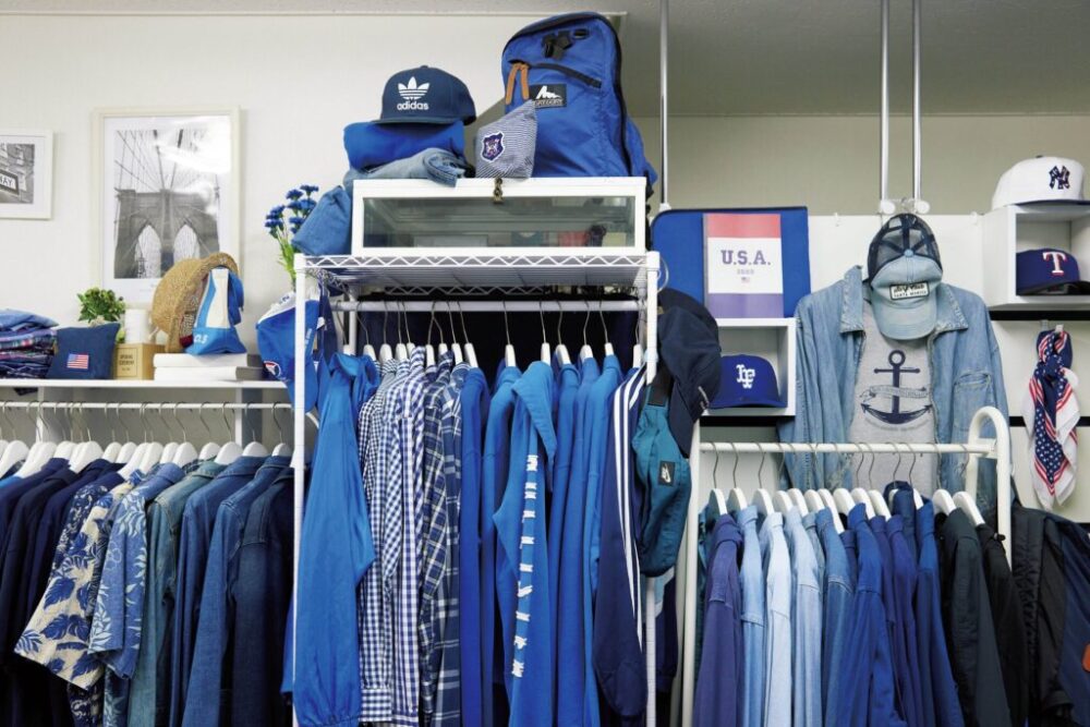 商品を青に絞ったのは、先述通り色分けが個性となり、客に喜ばれることを知っていたからだ。古着は卸などを使い、青いアイテムだけピックアップした。