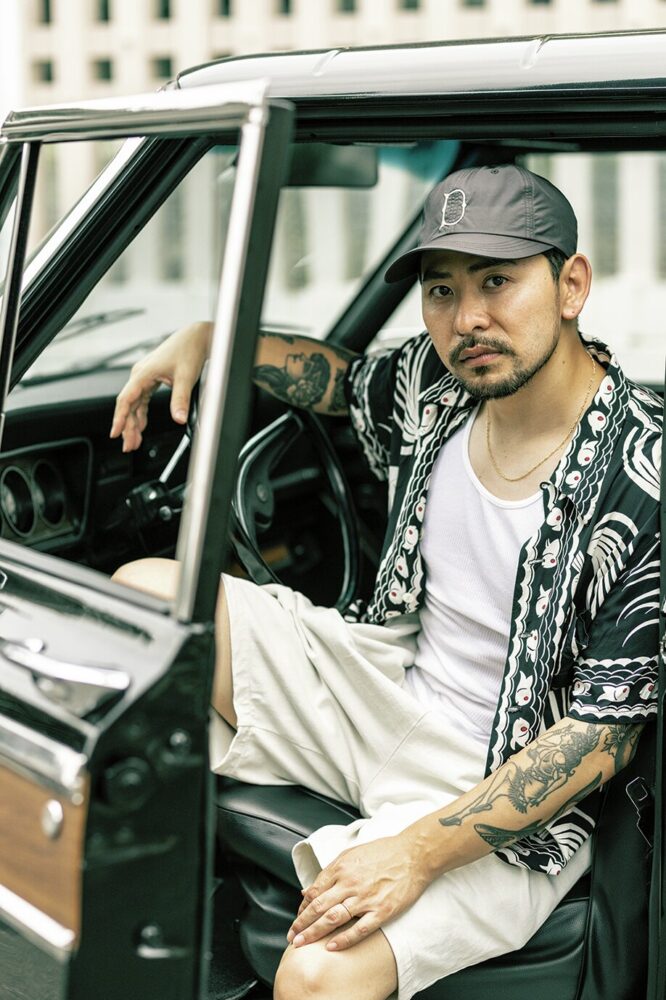 例えば、今日のコーディネイトだとヴィンテージのハワイアンシャツを着ているので、様式美で言えばパナマハットが似合うと思うのですが、あえてハイテク素材を使ったゴルフキャップを合わせています。スウェットショーツやスニーカーを合わせることで、うまくバランスを取りました。ヘッドウエアひとつで印象が変わるので、様々なテイストをミックスするのもおもしろいと思いますね。