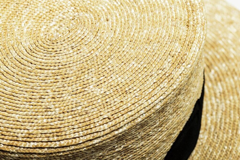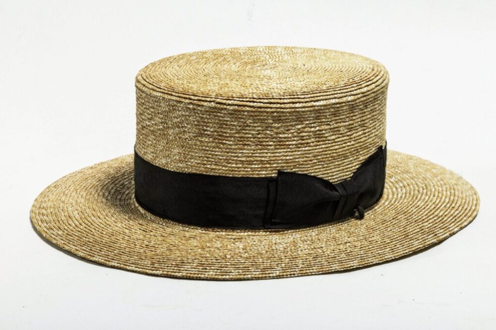 フレンチヴィンテージをモチーフにした細麦ブレードのカンカン帽。風合いのある素材感が存在感たっぷり。内側にはポマードガードがあり、クラシックな仕様になっているのも注目。3万3000円