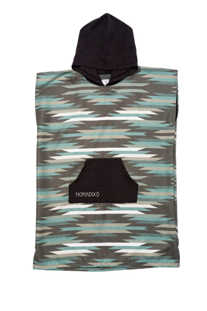 吸水力と速乾性を併せ持つリサイクルポリエステルとナイロンの生地使用のチェンジングポンチョ。表面には砂が付きにくく野外でも使い勝手抜群。1万2100円(アルコインターナショナル TEL06-6563-7346)